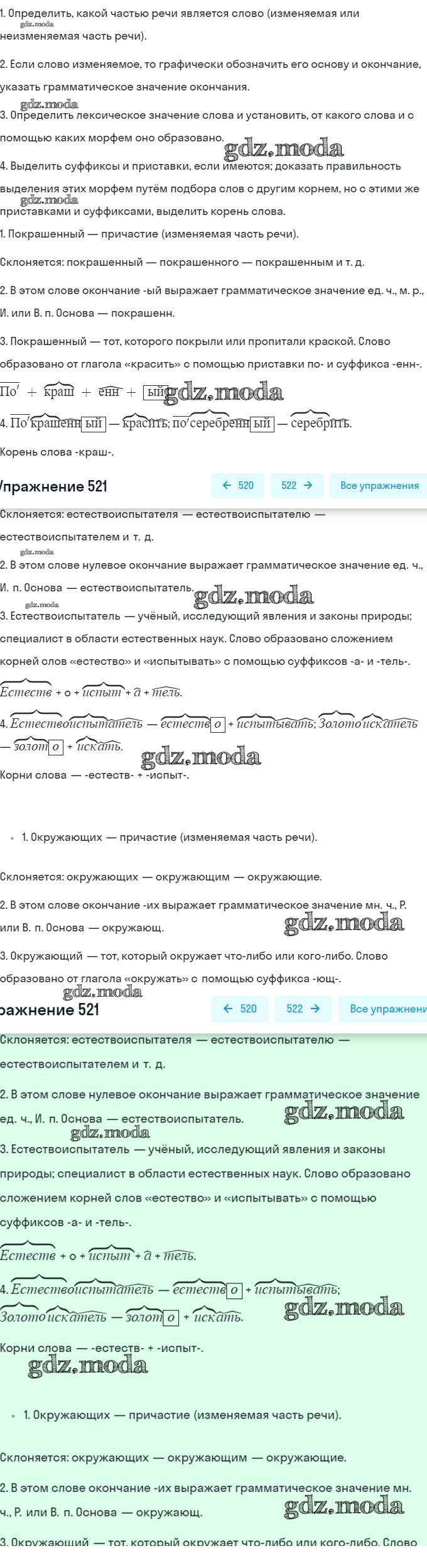ОТВЕТ на задание № 521 Учебник по Русскому языку 7 класс Разумовская УМК