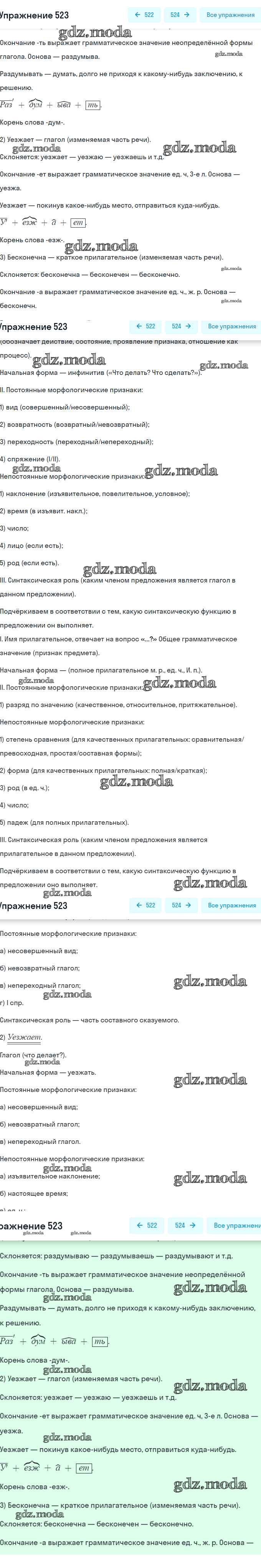 ОТВЕТ на задание № 523 Учебник по Русскому языку 7 класс Разумовская УМК