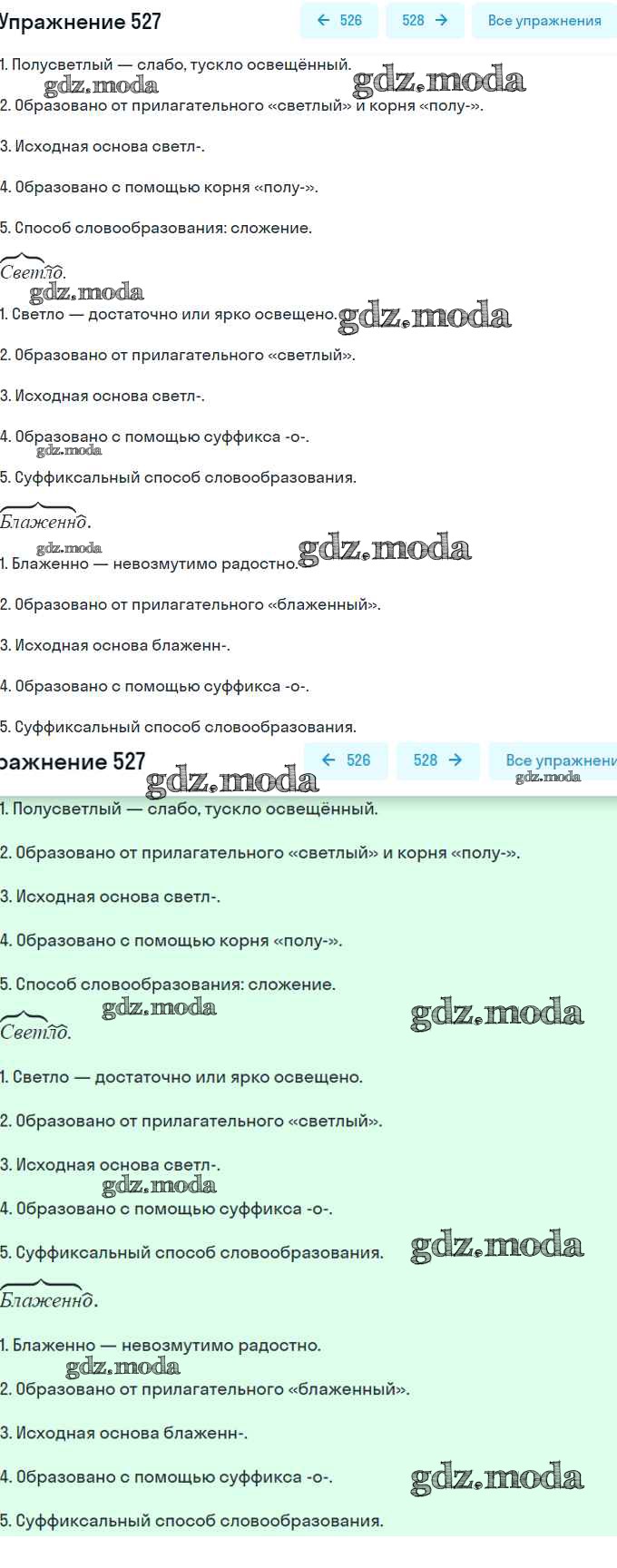 ОТВЕТ на задание № 527 Учебник по Русскому языку 7 класс Разумовская УМК