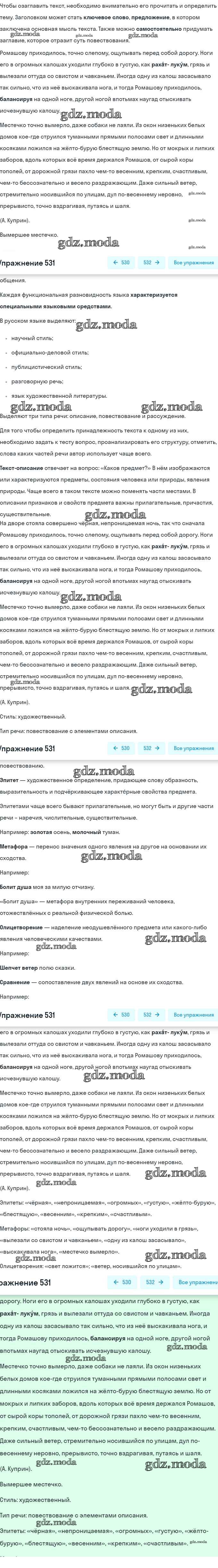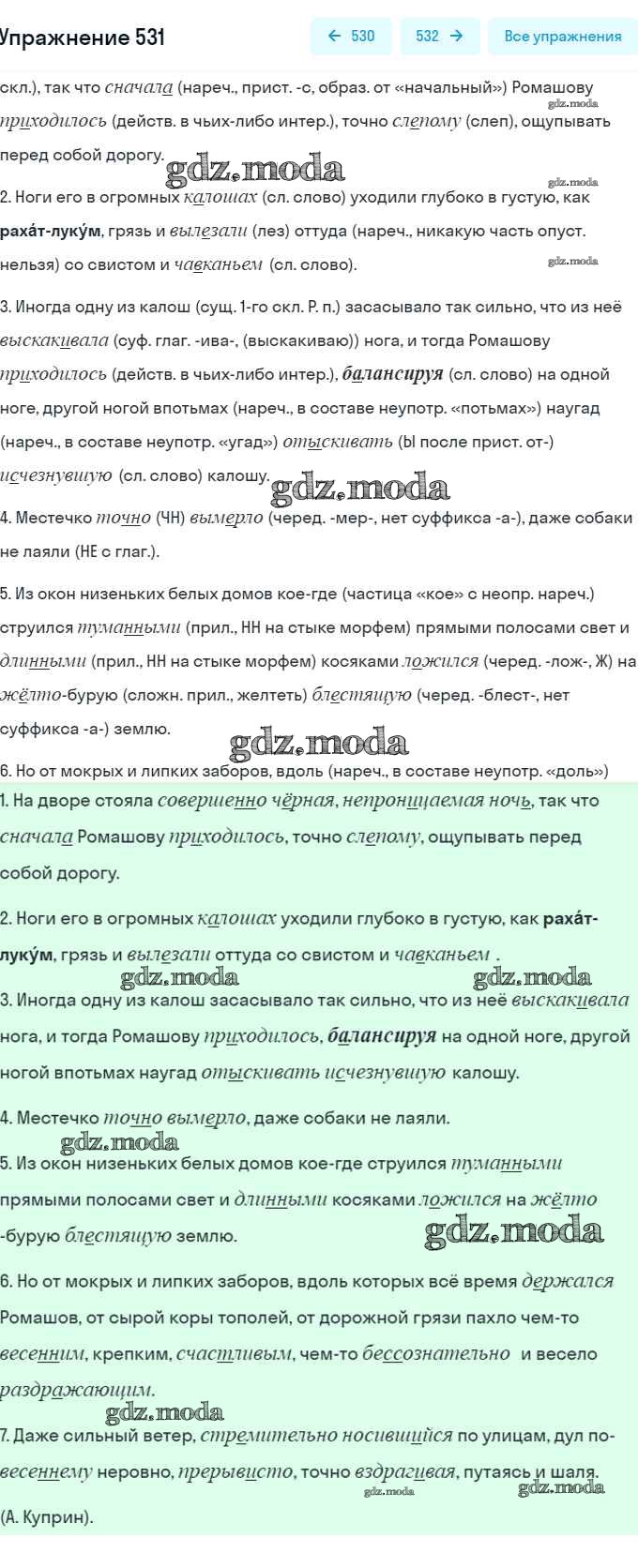 ОТВЕТ на задание № 531 Учебник по Русскому языку 7 класс Разумовская УМК