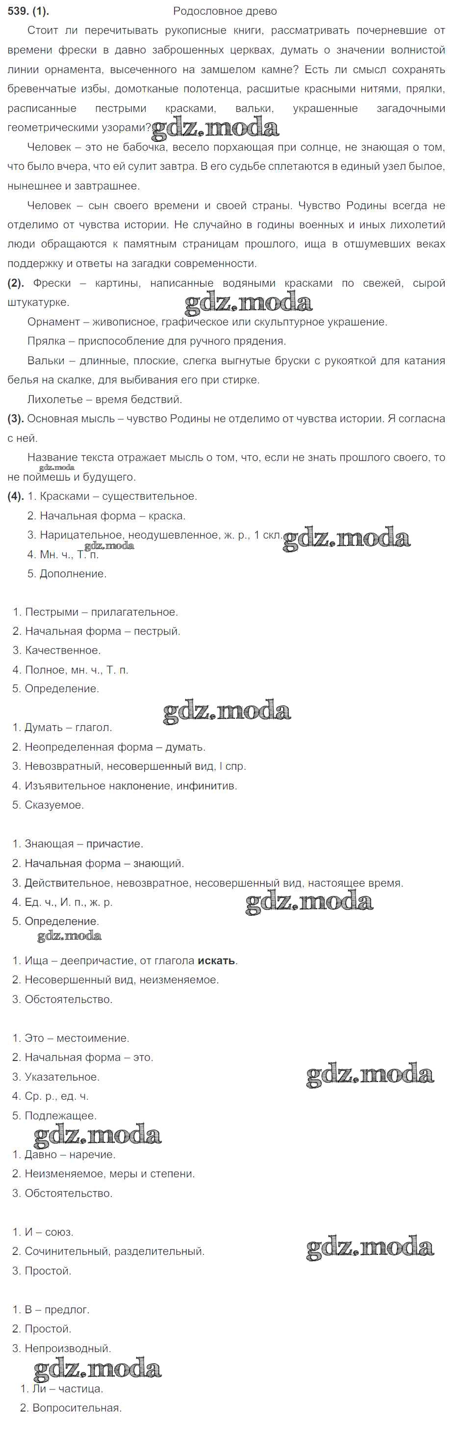 ОТВЕТ на задание № 539 Учебник по Русскому языку 7 класс Разумовская УМК