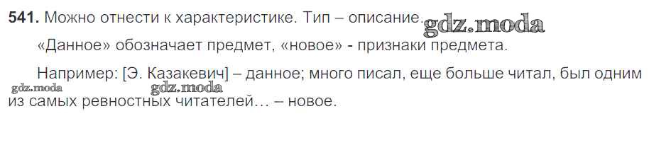ОТВЕТ на задание № 541 Учебник по Русскому языку 7 класс Разумовская УМК