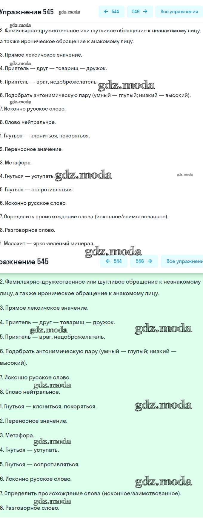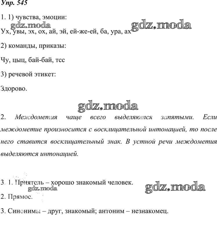 ОТВЕТ на задание № 545 Учебник по Русскому языку 7 класс Разумовская УМК