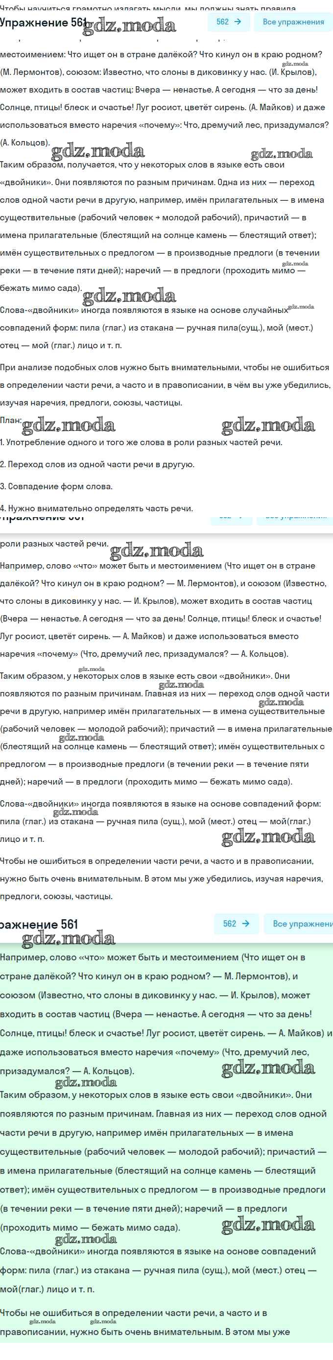 ОТВЕТ на задание № 561 Учебник по Русскому языку 7 класс Разумовская УМК