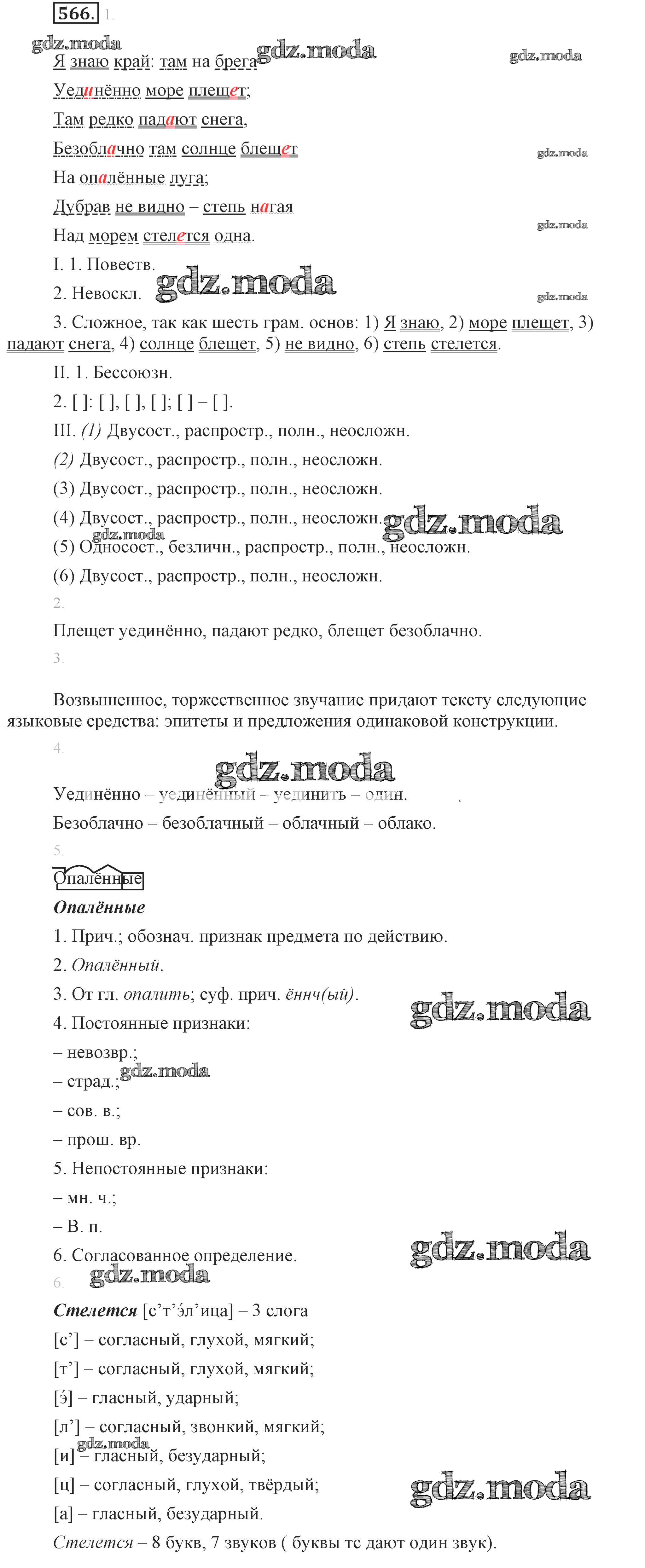 ОТВЕТ на задание № 566 Учебник по Русскому языку 7 класс Разумовская УМК