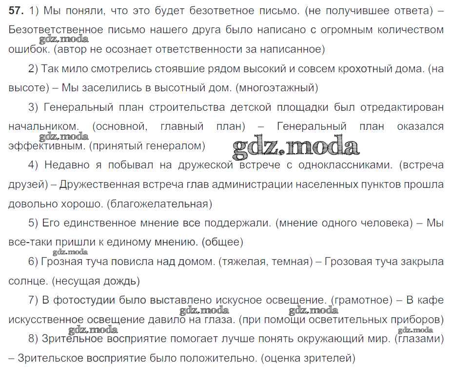 ОТВЕТ на задание № 57 Учебник по Русскому языку 7 класс Разумовская УМК
