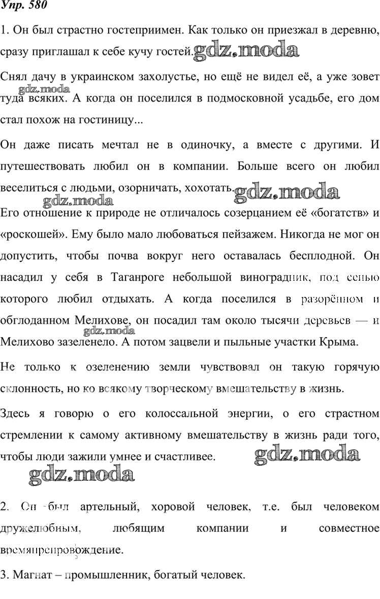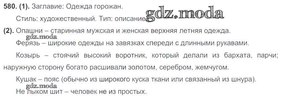 ОТВЕТ на задание № 580 Учебник по Русскому языку 7 класс Разумовская УМК