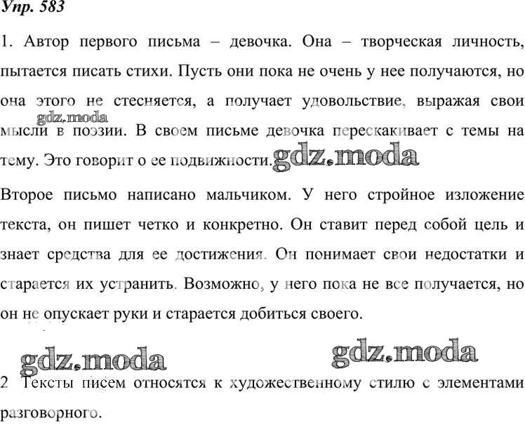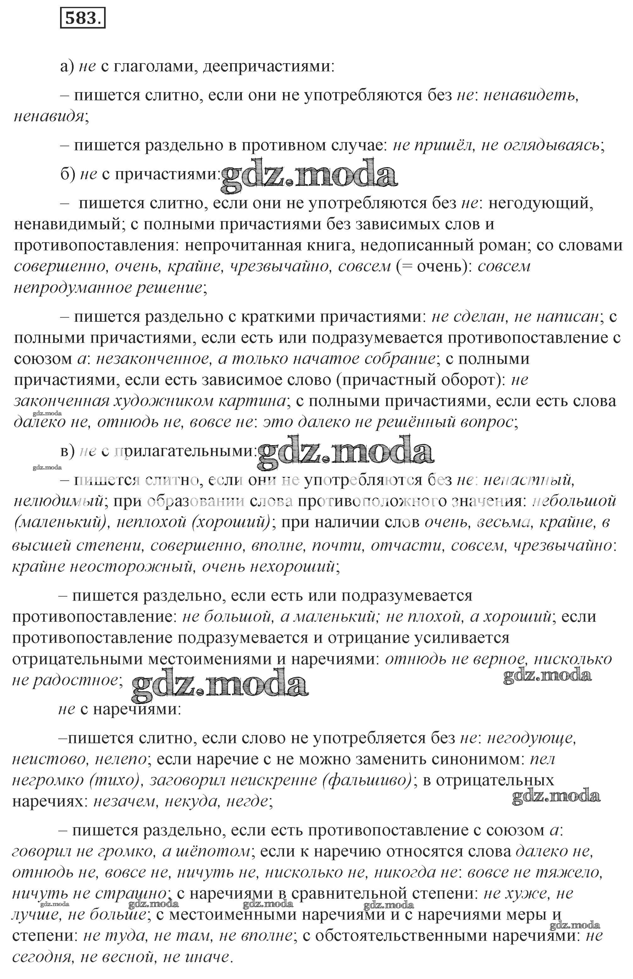 ОТВЕТ на задание № 583 Учебник по Русскому языку 7 класс Разумовская УМК