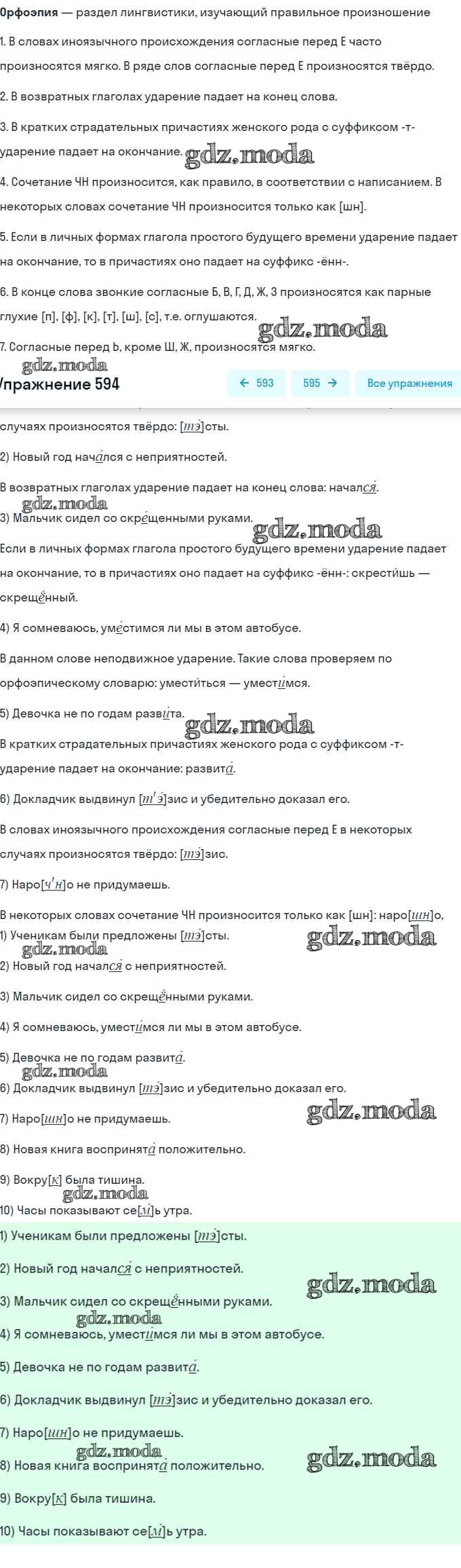 ОТВЕТ на задание № 594 Учебник по Русскому языку 7 класс Разумовская УМК