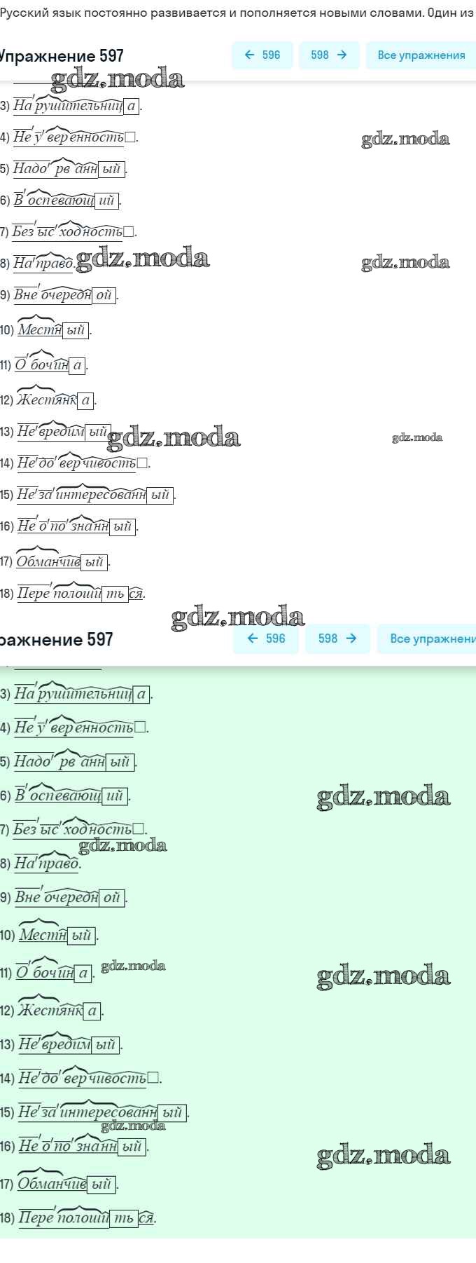 ОТВЕТ на задание № 597 Учебник по Русскому языку 7 класс Разумовская УМК