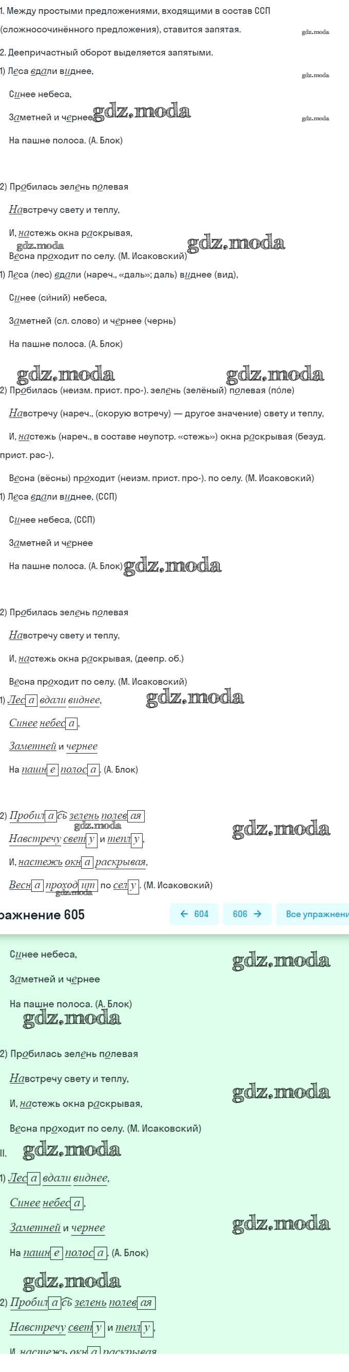 ОТВЕТ на задание № 605 Учебник по Русскому языку 7 класс Разумовская УМК