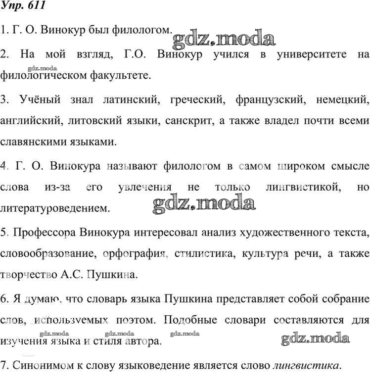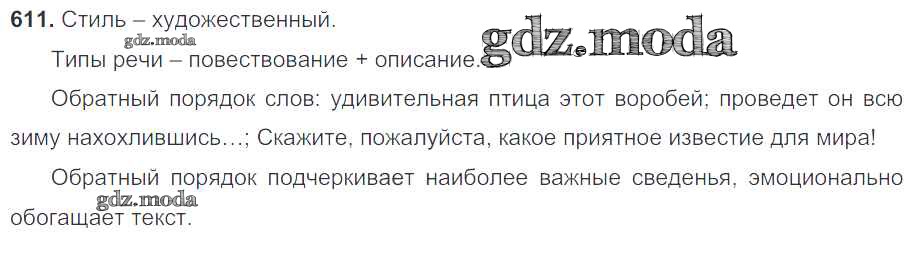 ОТВЕТ на задание № 611 Учебник по Русскому языку 7 класс Разумовская УМК