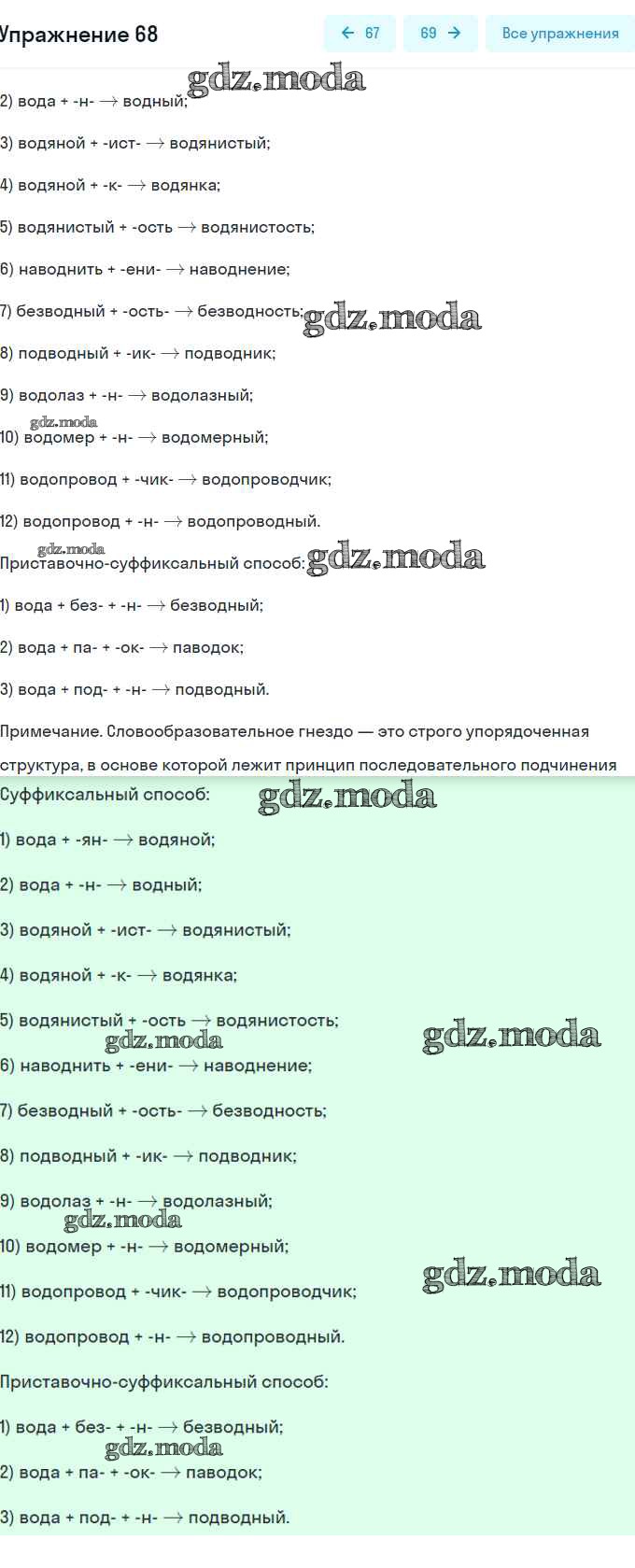 ОТВЕТ на задание № 68 Учебник по Русскому языку 7 класс Разумовская УМК