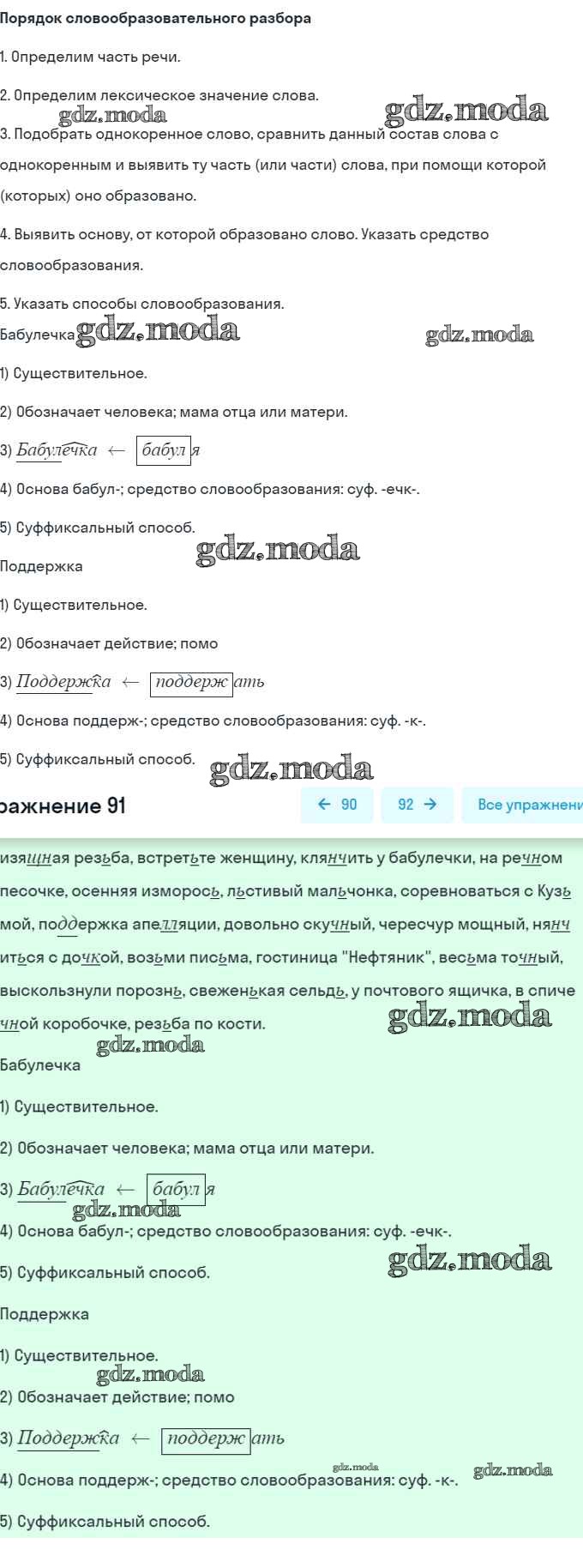 ОТВЕТ на задание № 91 Учебник по Русскому языку 7 класс Разумовская УМК