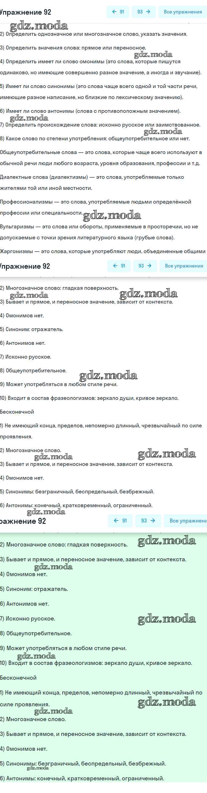 ОТВЕТ на задание № 92 Учебник по Русскому языку 7 класс Разумовская УМК
