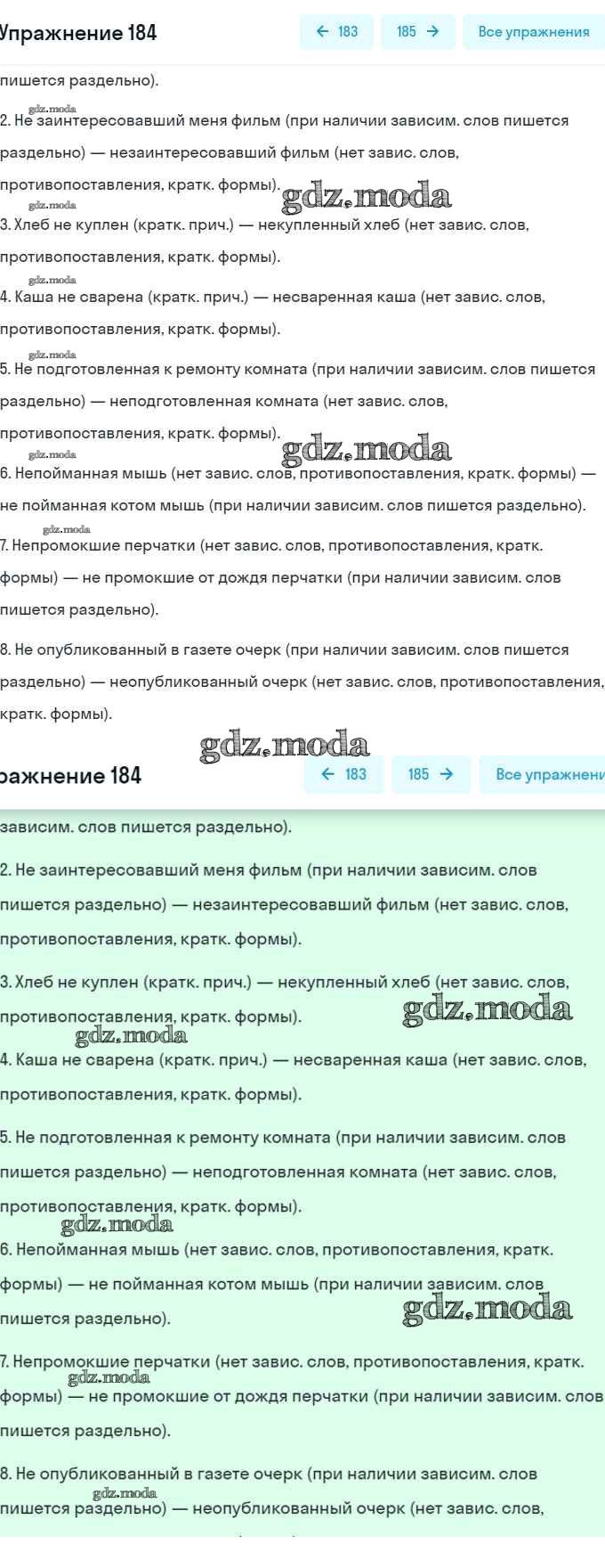 ОТВЕТ на задание № 184 Учебник по Русскому языку 7 класс Рыбченкова