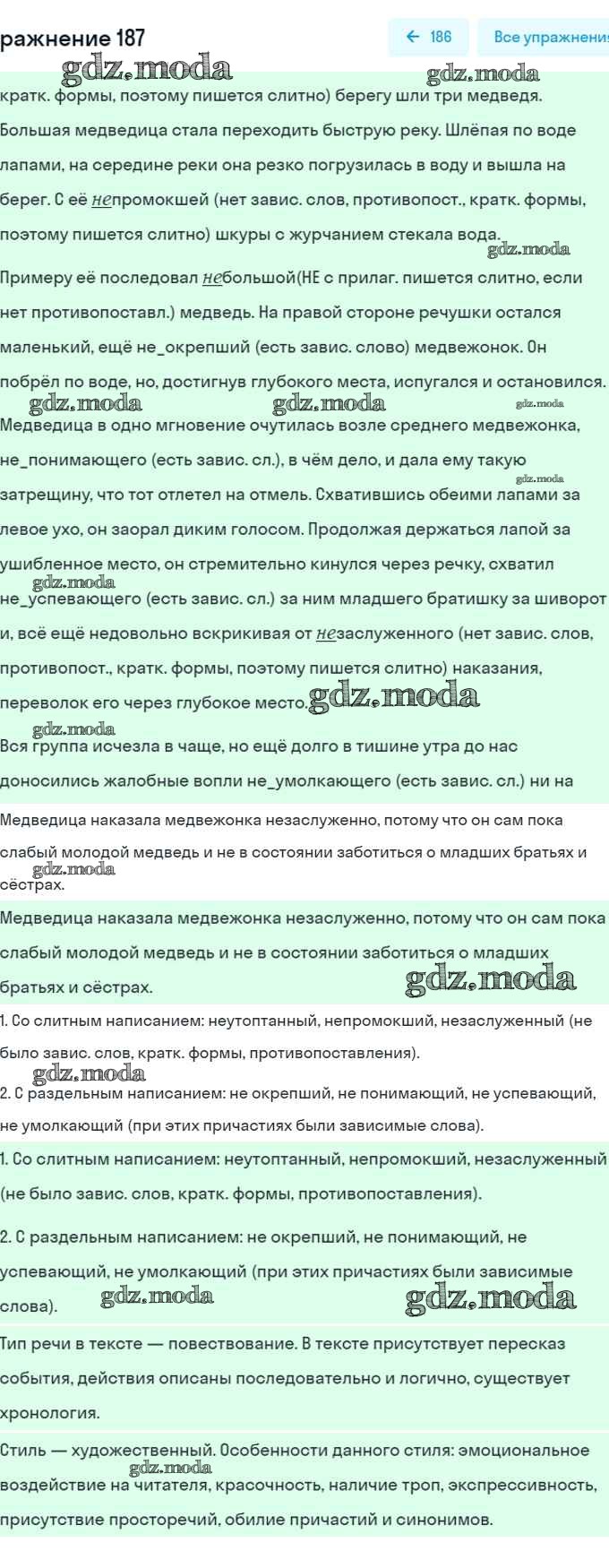 ОТВЕТ на задание № 187 Учебник по Русскому языку 7 класс Рыбченкова