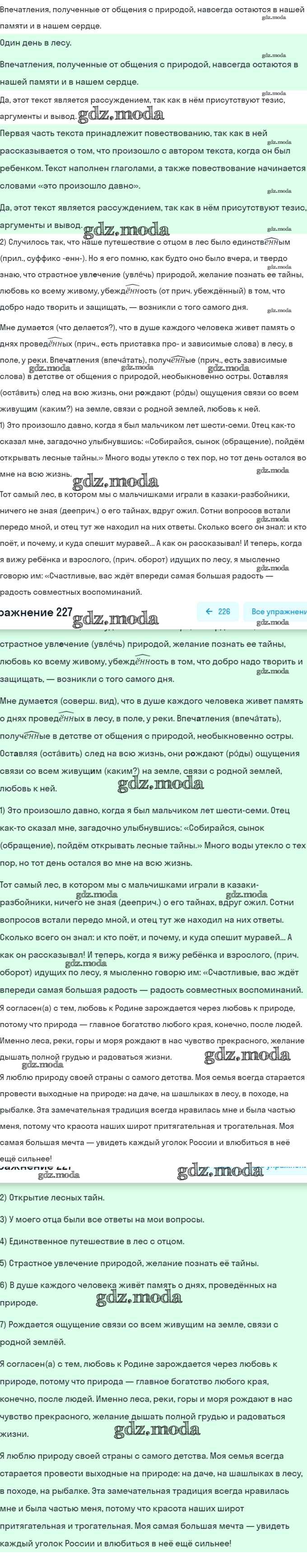 ГДЗ решение к заданию № 227 Русский язык 7 класс Рыбченкова Л.М. Просвещение, Просвещение 2016, 2019 ФГОС бесплатно на гдз.мода!