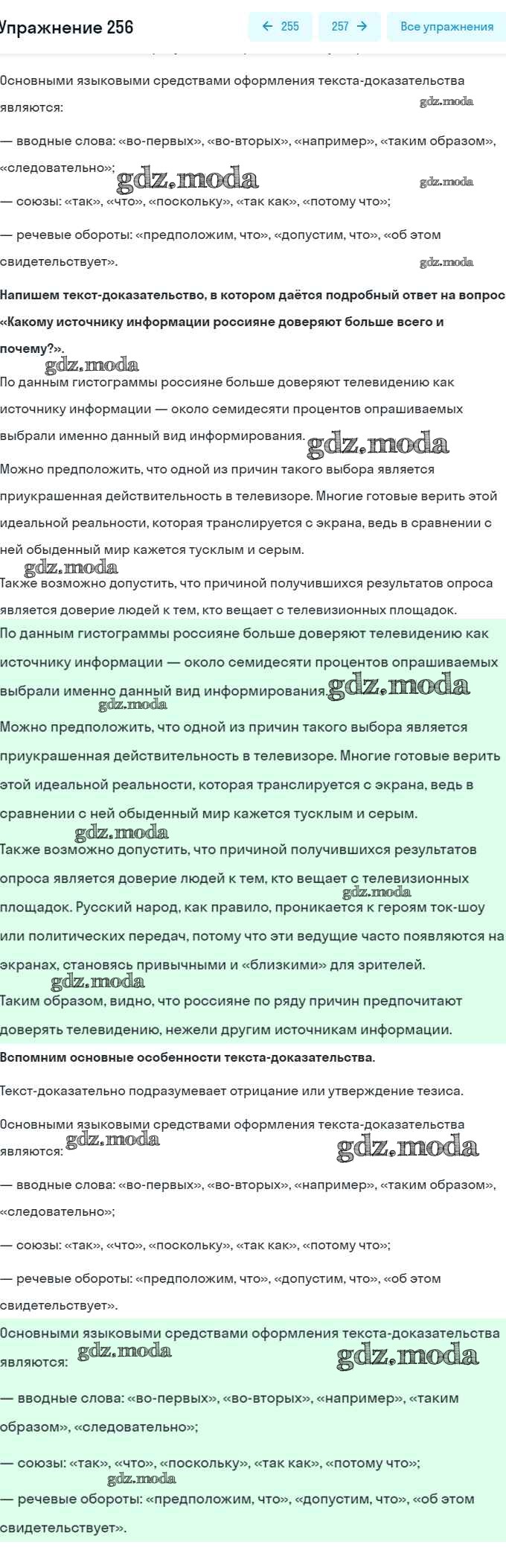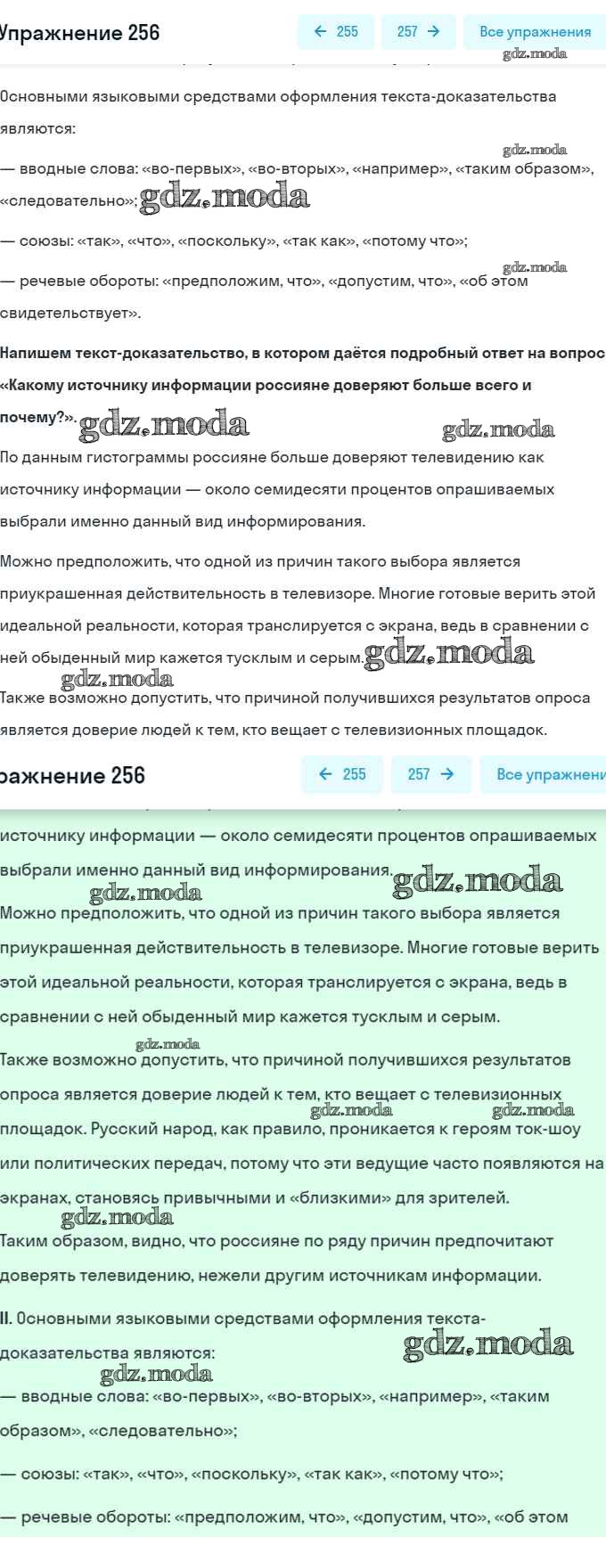 ОТВЕТ на задание № 256 Учебник по Русскому языку 7 класс Рыбченкова