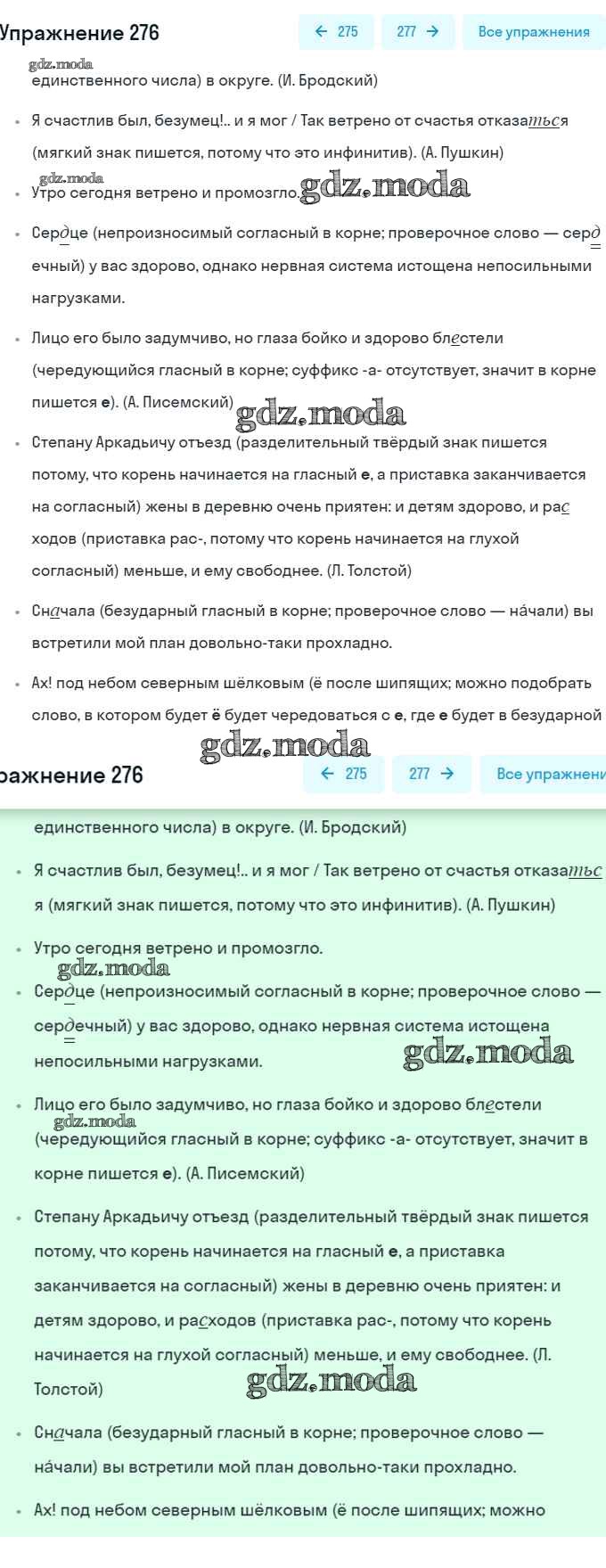 ОТВЕТ на задание № 276 Учебник по Русскому языку 7 класс Рыбченкова