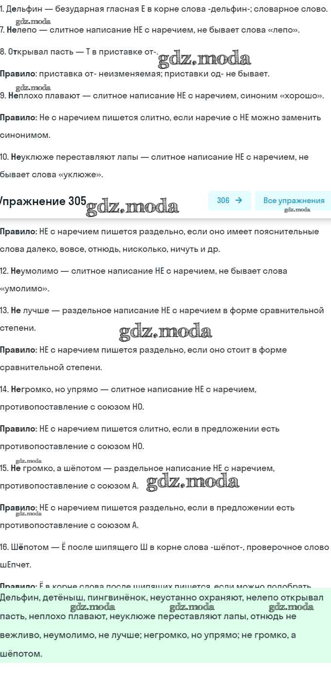 ГДЗ решение к заданию № 305 Русский язык 7 класс Рыбченкова Л.М. Просвещение, Просвещение 2016, 2019 ФГОС бесплатно на гдз.мода!