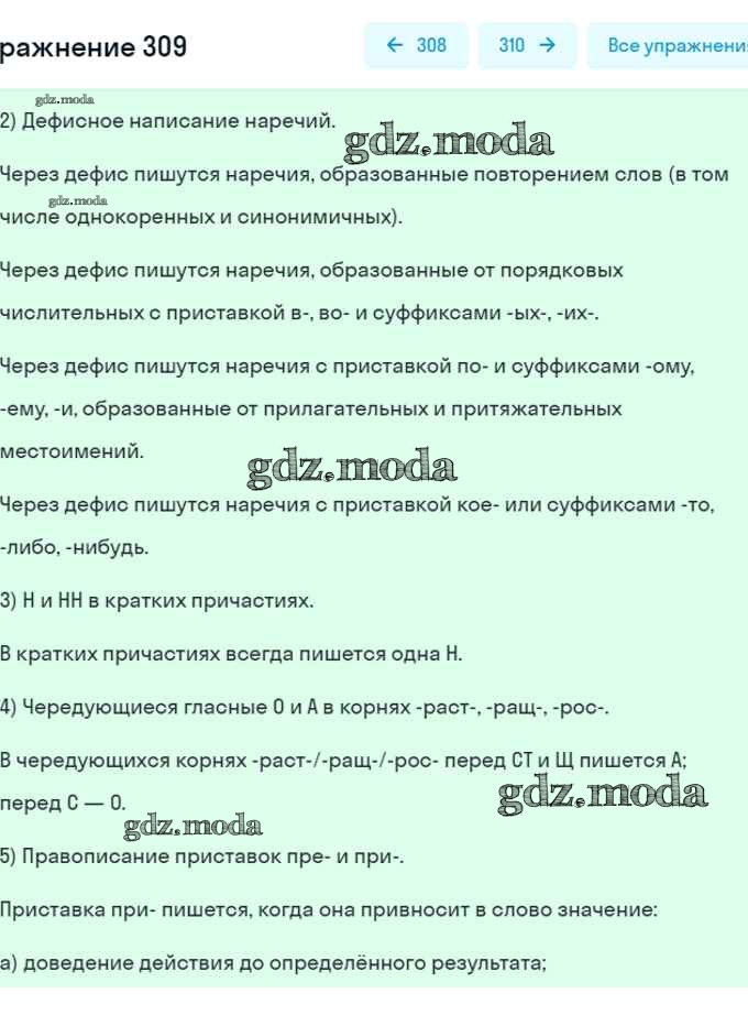 ОТВЕТ на задание № 309 Учебник по Русскому языку 7 класс Рыбченкова