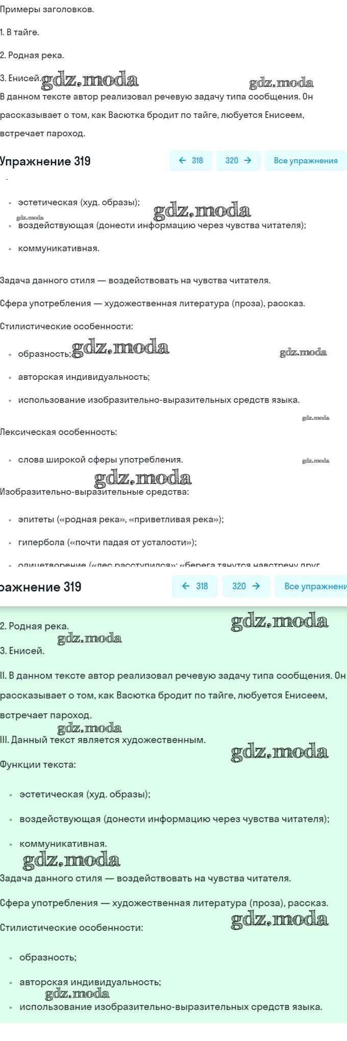 ОТВЕТ на задание № 319 Учебник по Русскому языку 7 класс Рыбченкова