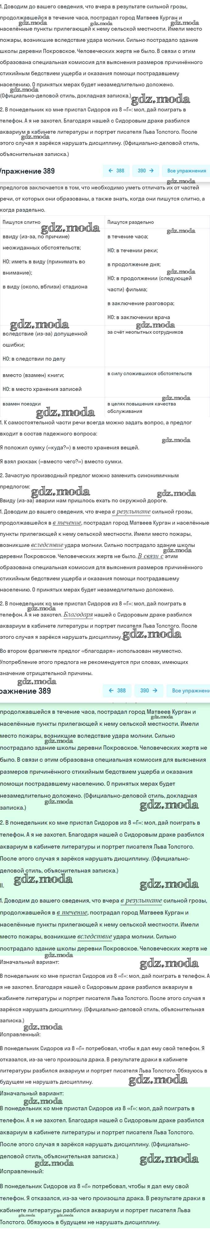 ОТВЕТ на задание № 389 Учебник по Русскому языку 7 класс Рыбченкова