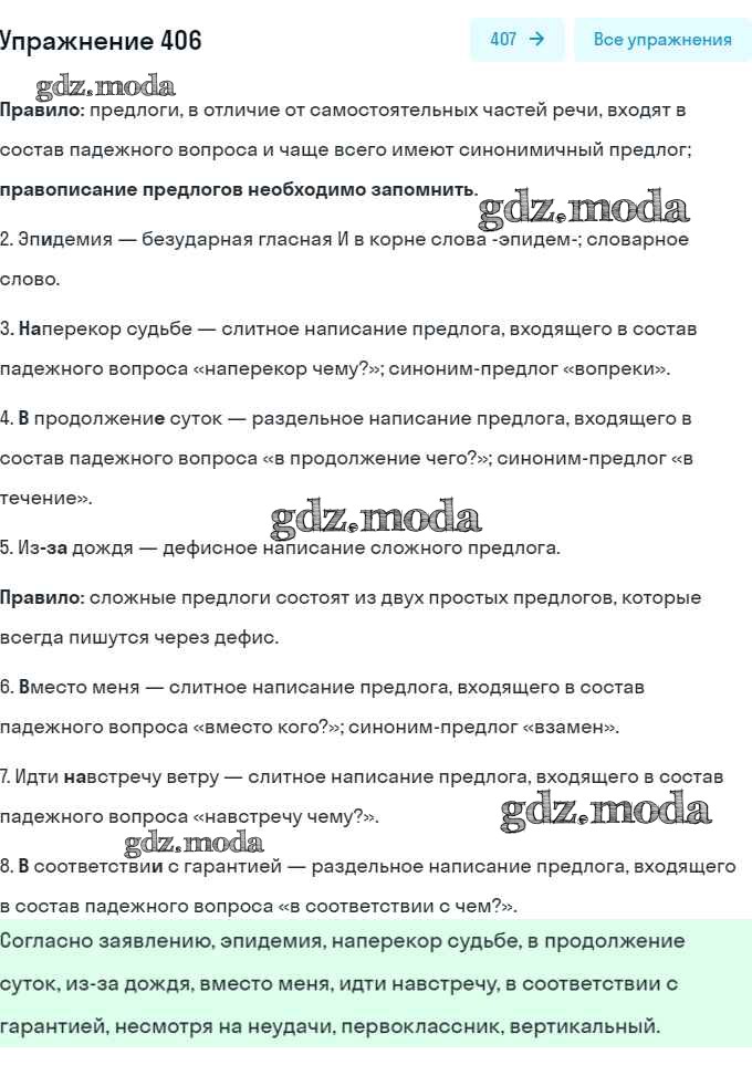 ОТВЕТ на задание № 406 Учебник по Русскому языку 7 класс Рыбченкова