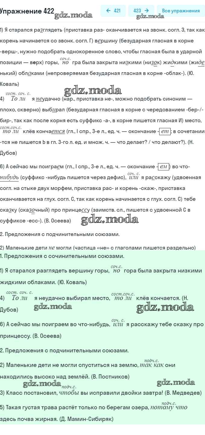 ОТВЕТ на задание № 422 Учебник по Русскому языку 7 класс Рыбченкова