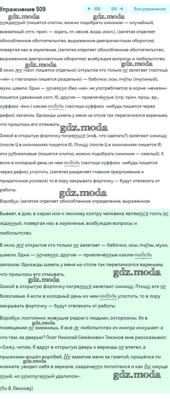 ГДЗ решение к заданию № 509 Русский язык 7 класс Рыбченкова Л.М. Просвещение, Просвещение 2016, 2019 ФГОС бесплатно на гдз.мода!