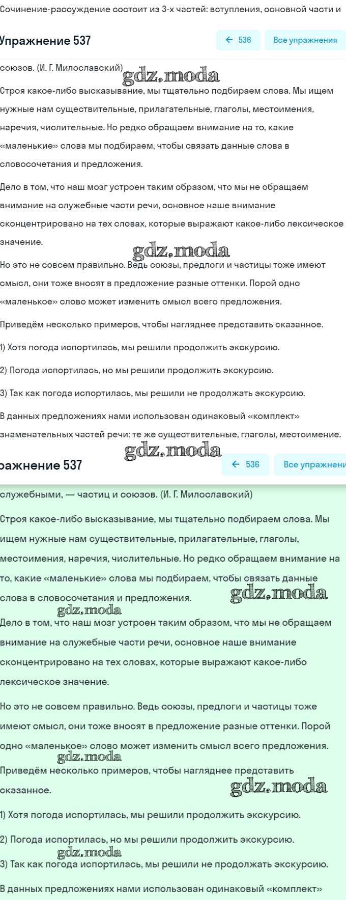 ОТВЕТ на задание № 537 Учебник по Русскому языку 7 класс Рыбченкова