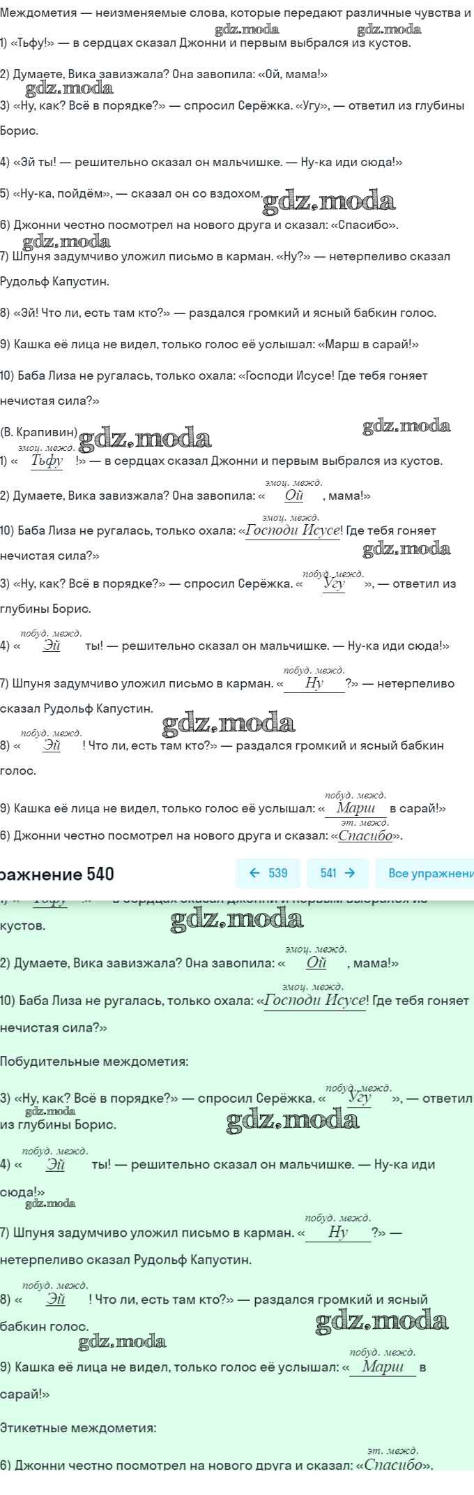ГДЗ решение к заданию № 540 Русский язык 7 класс Рыбченкова Л.М. Просвещение, Просвещение 2016, 2019 ФГОС бесплатно на гдз.мода!