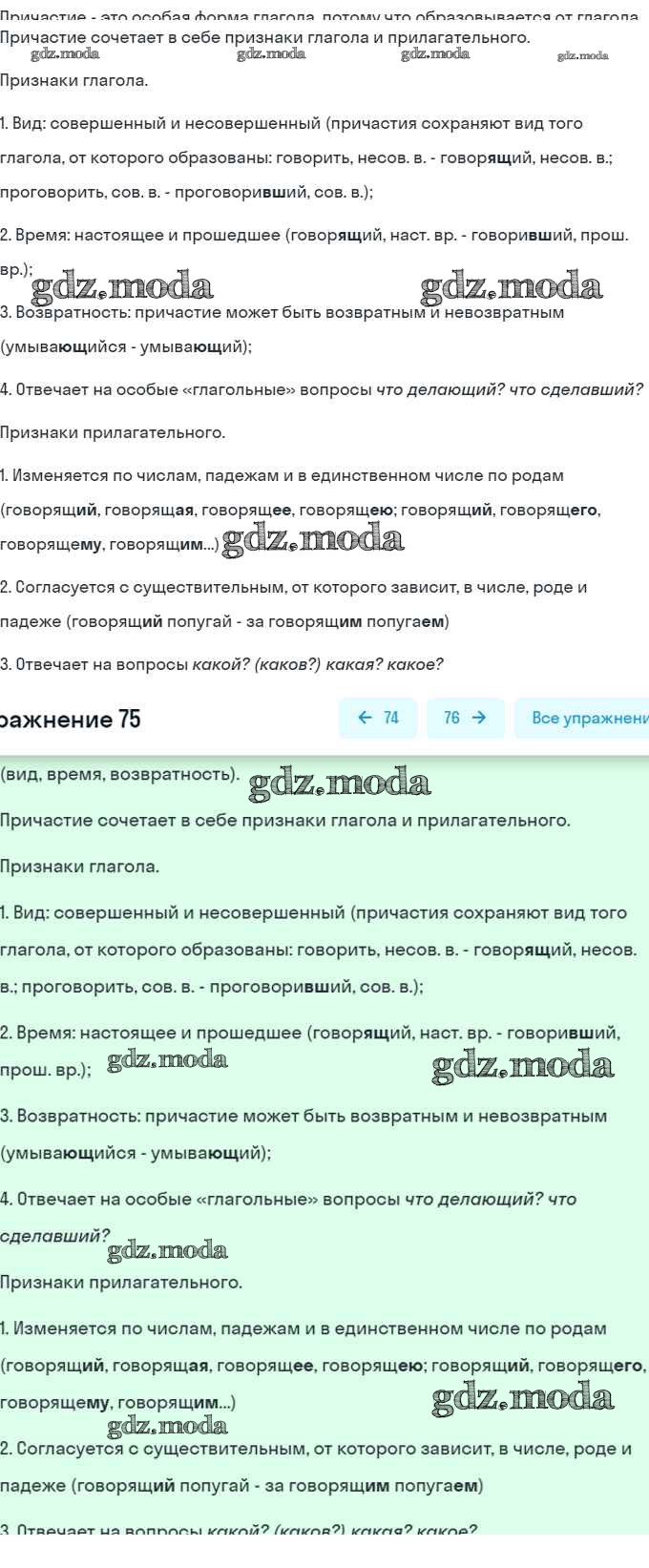 ГДЗ решение к заданию № 75 Русский язык 7 класс Рыбченкова Л.М. Просвещение, Просвещение 2016, 2019 ФГОС бесплатно на гдз.мода!