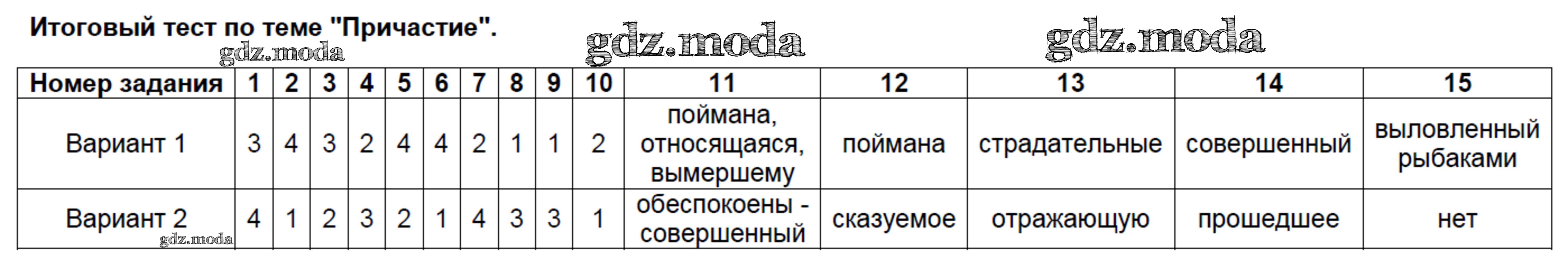 ОТВЕТ на задание № Тест № 12. Итоговый тест по теме Причастие Тесты по Русскому языку 7 класс Селезнева УМК