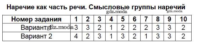 ОТВЕТ на задание № Тест № 1. Наречие как часть речи. Смысловые группы наречий Тесты по Русскому языку 7 класс Селезнева УМК