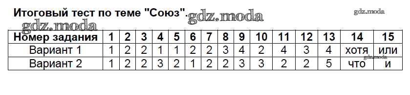 ОТВЕТ на задание № Тест № 11. Итоговый тест по теме Союз Тесты по Русскому языку 7 класс Селезнева УМК