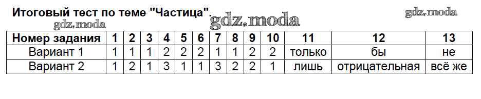 ГДЗ решение к заданию № Тест № 14. Итоговый тест по теме Частица Русский язык 7 класс тесты Селезнева Е.В. (к уч. Баранова) Экзамен 2014 Часть 1, Часть 2 ФГОС бесплатно на гдз.мода!