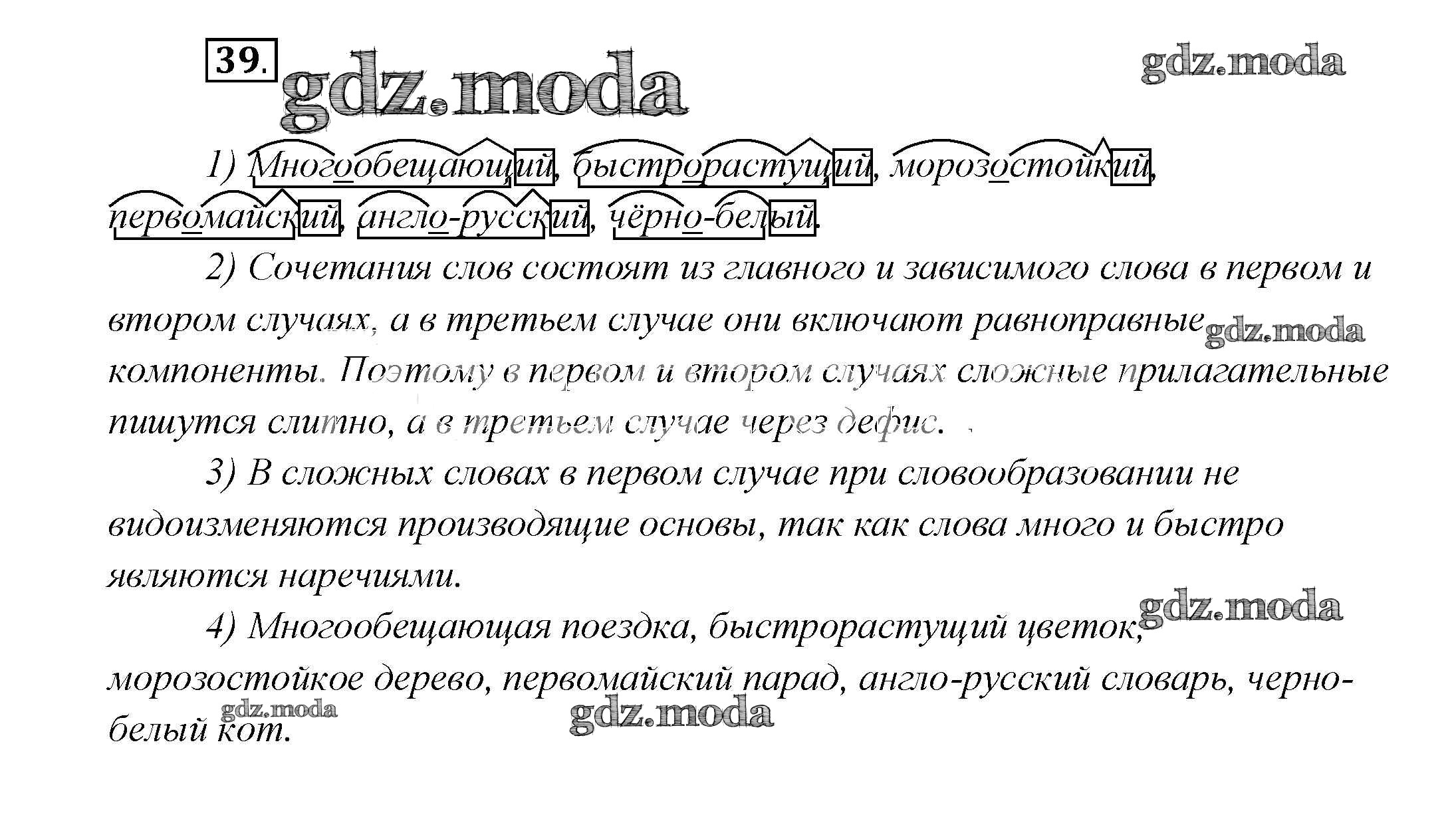 ГДЗ решение к заданию № 39 Русский язык 7 класс Шмелев А.Д. Вентана-граф 2016 ФГОС бесплатно на гдз.мода!