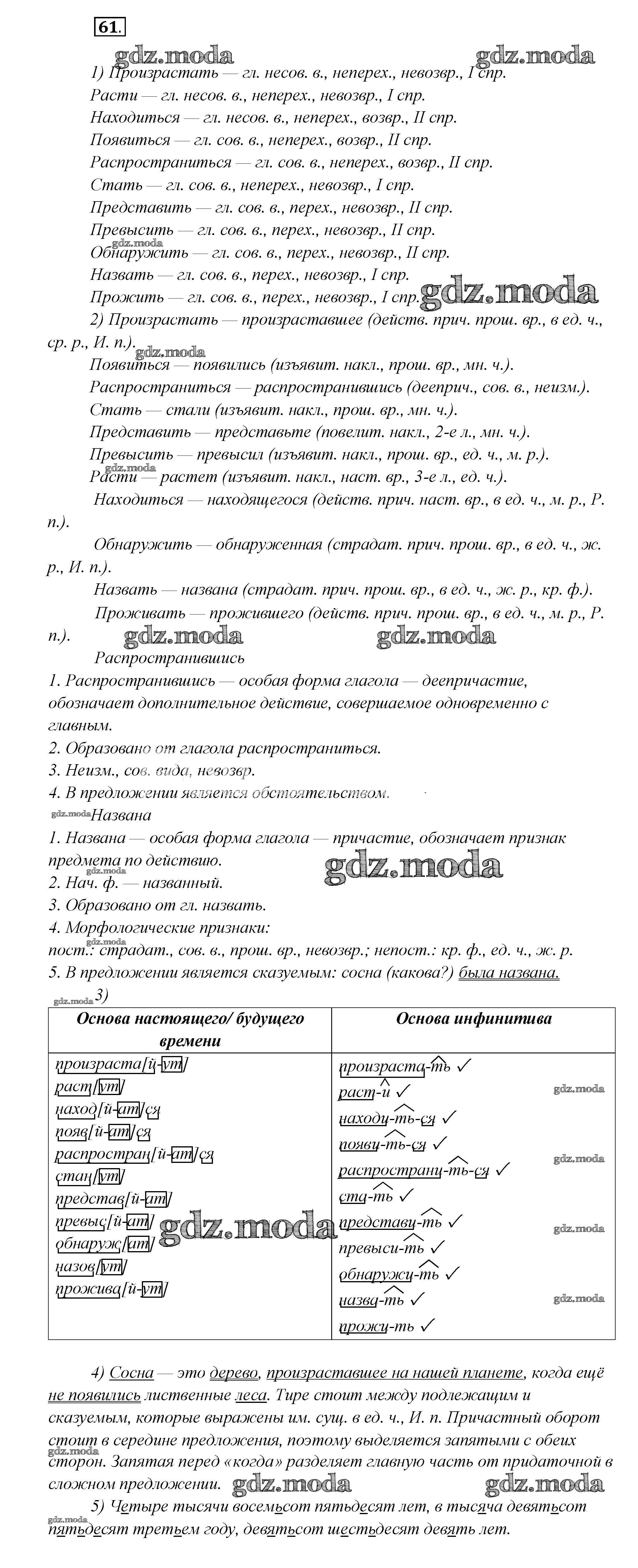 ГДЗ решение к заданию № 61 Русский язык 7 класс Шмелев А.Д. Вентана-граф 2016 ФГОС бесплатно на гдз.мода!