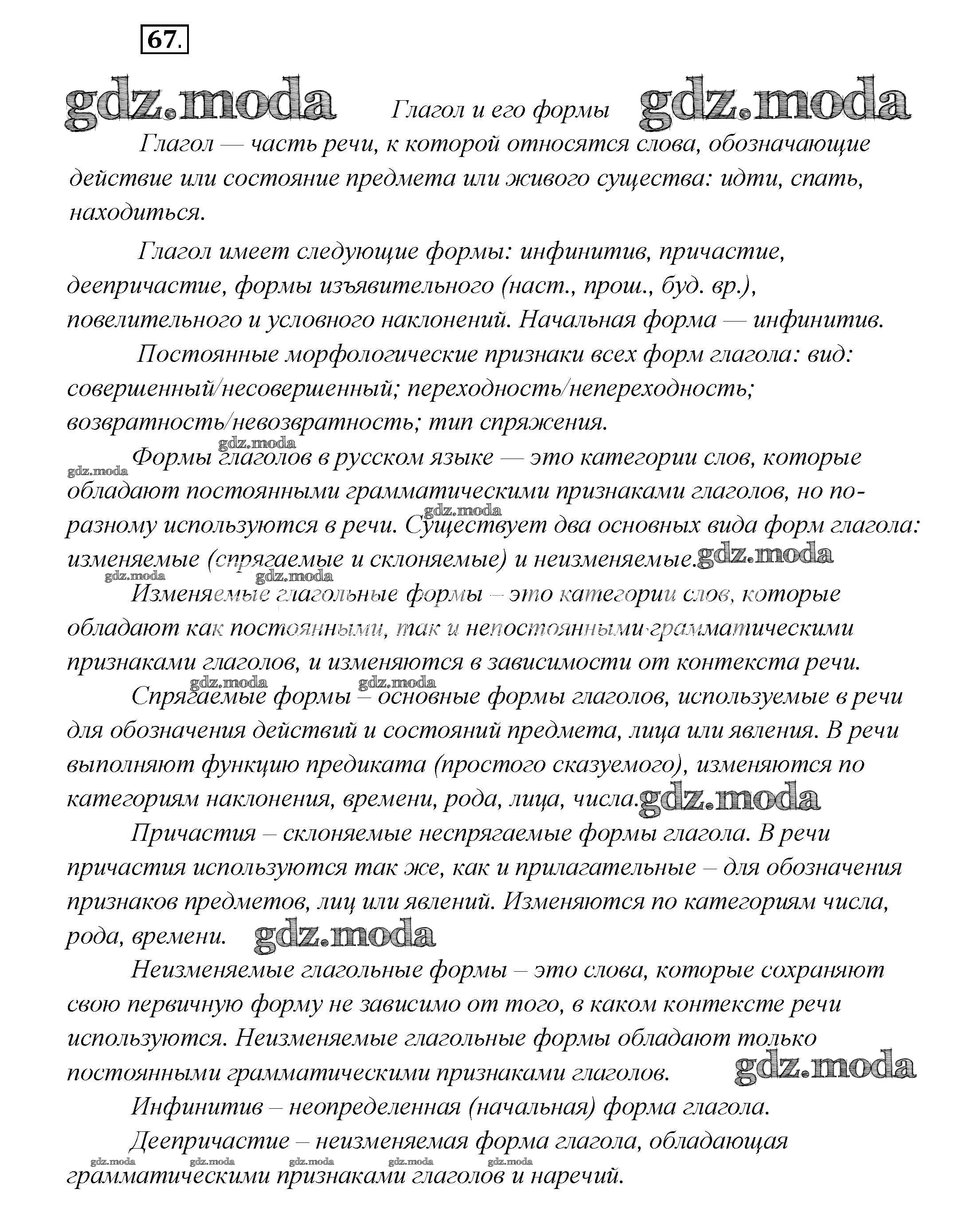 ГДЗ решение к заданию № 67 Русский язык 7 класс Шмелев А.Д. Вентана-граф 2016 ФГОС бесплатно на гдз.мода!