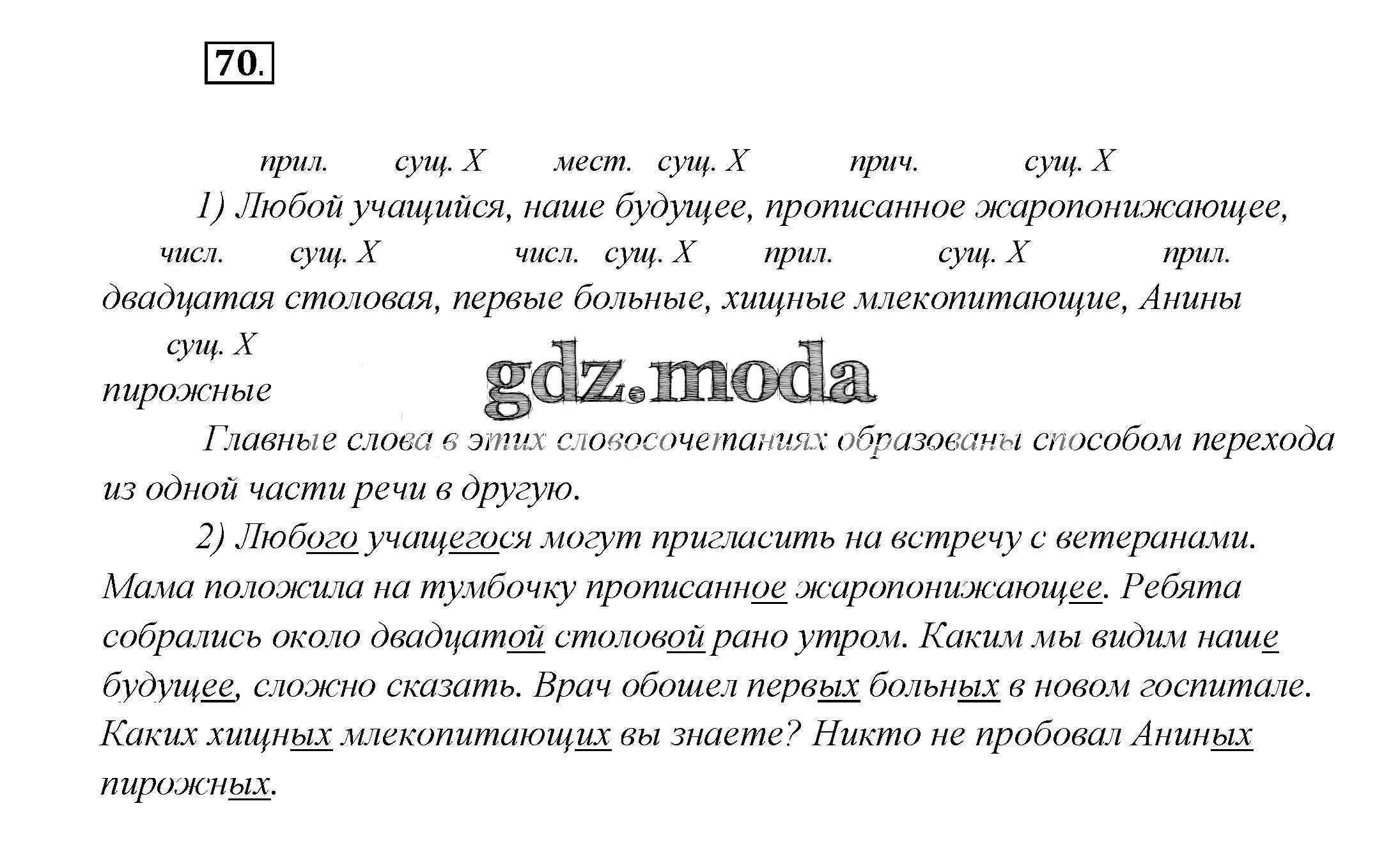 ГДЗ решение к заданию № 70 Русский язык 7 класс Шмелев А.Д. Вентана-граф 2016 ФГОС бесплатно на гдз.мода!
