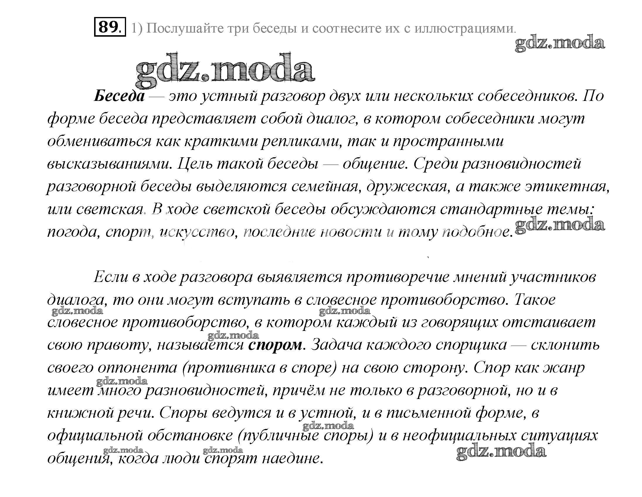 ГДЗ решение к заданию № 89 Русский язык 7 класс Шмелев А.Д. Вентана-граф 2016 ФГОС бесплатно на гдз.мода!