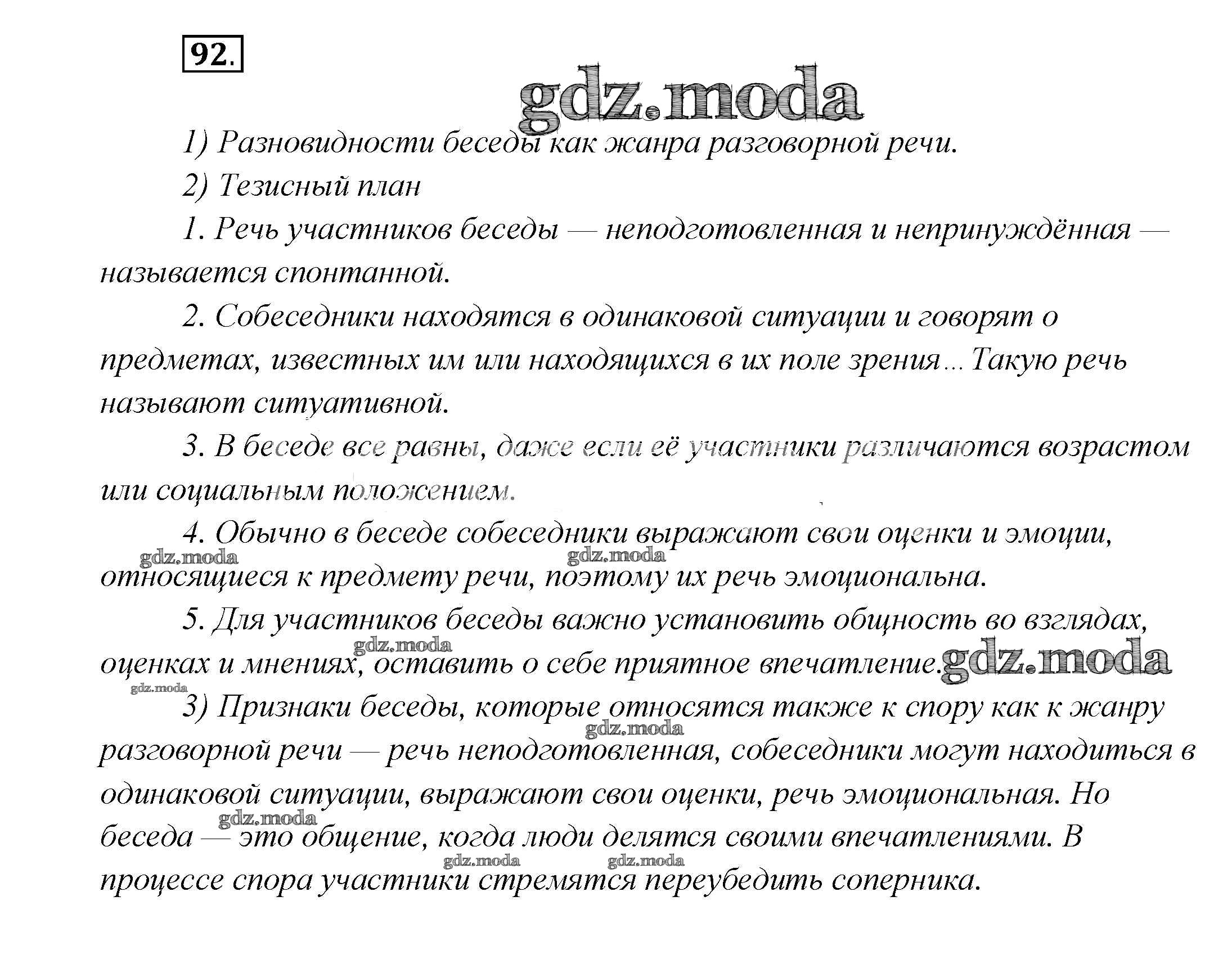 ГДЗ решение к заданию № 92 Русский язык 7 класс Шмелев А.Д. Вентана-граф 2016 ФГОС бесплатно на гдз.мода!