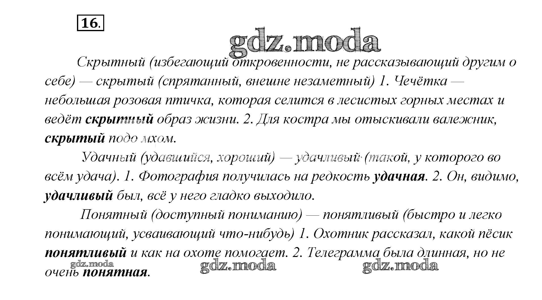 ГДЗ решение к заданию № 16 Русский язык 7 класс Шмелев А.Д. Вентана-граф 2016 ФГОС бесплатно на гдз.мода!