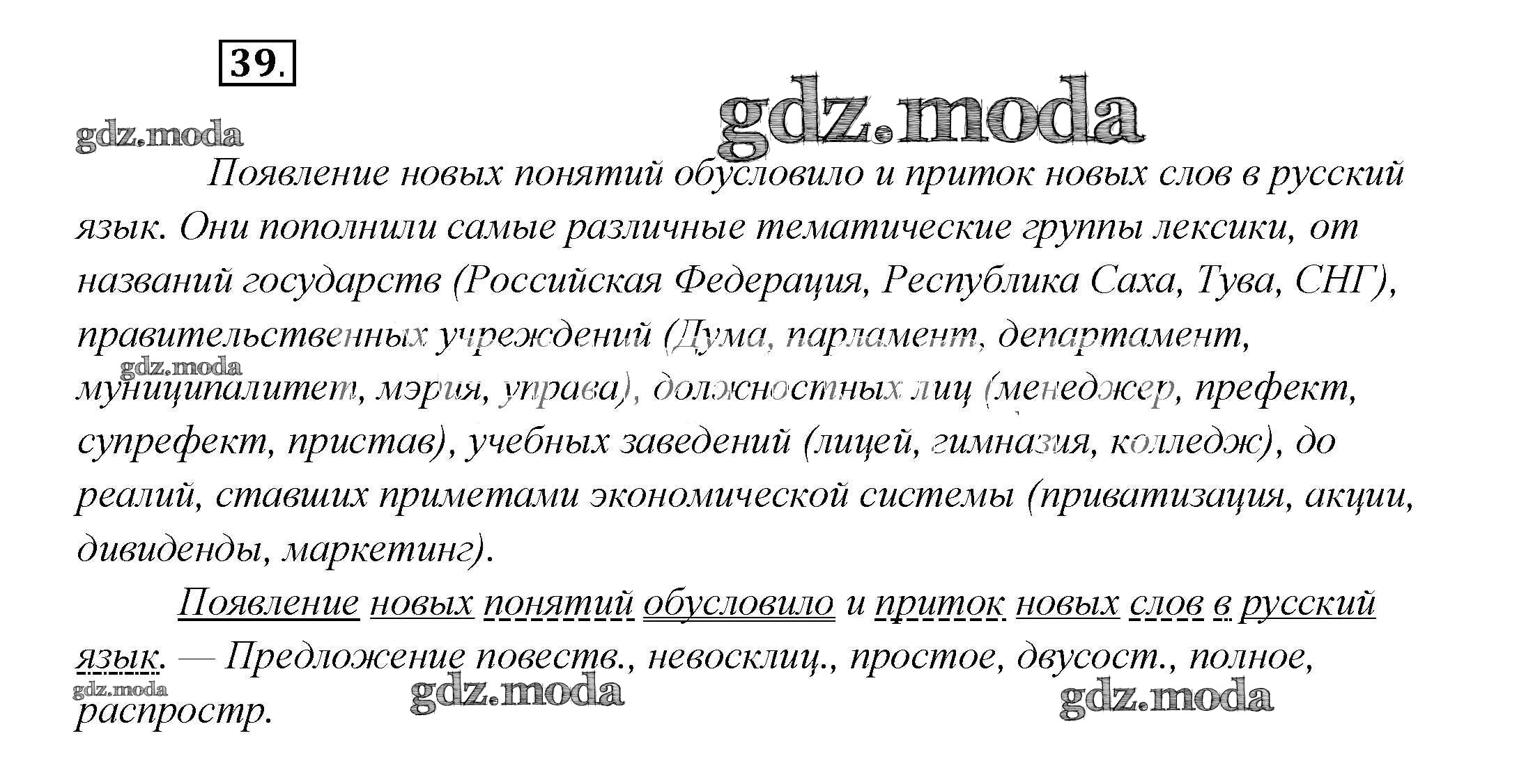 ГДЗ решение к заданию № 39 Русский язык 7 класс Шмелев А.Д. Вентана-граф 2016 ФГОС бесплатно на гдз.мода!