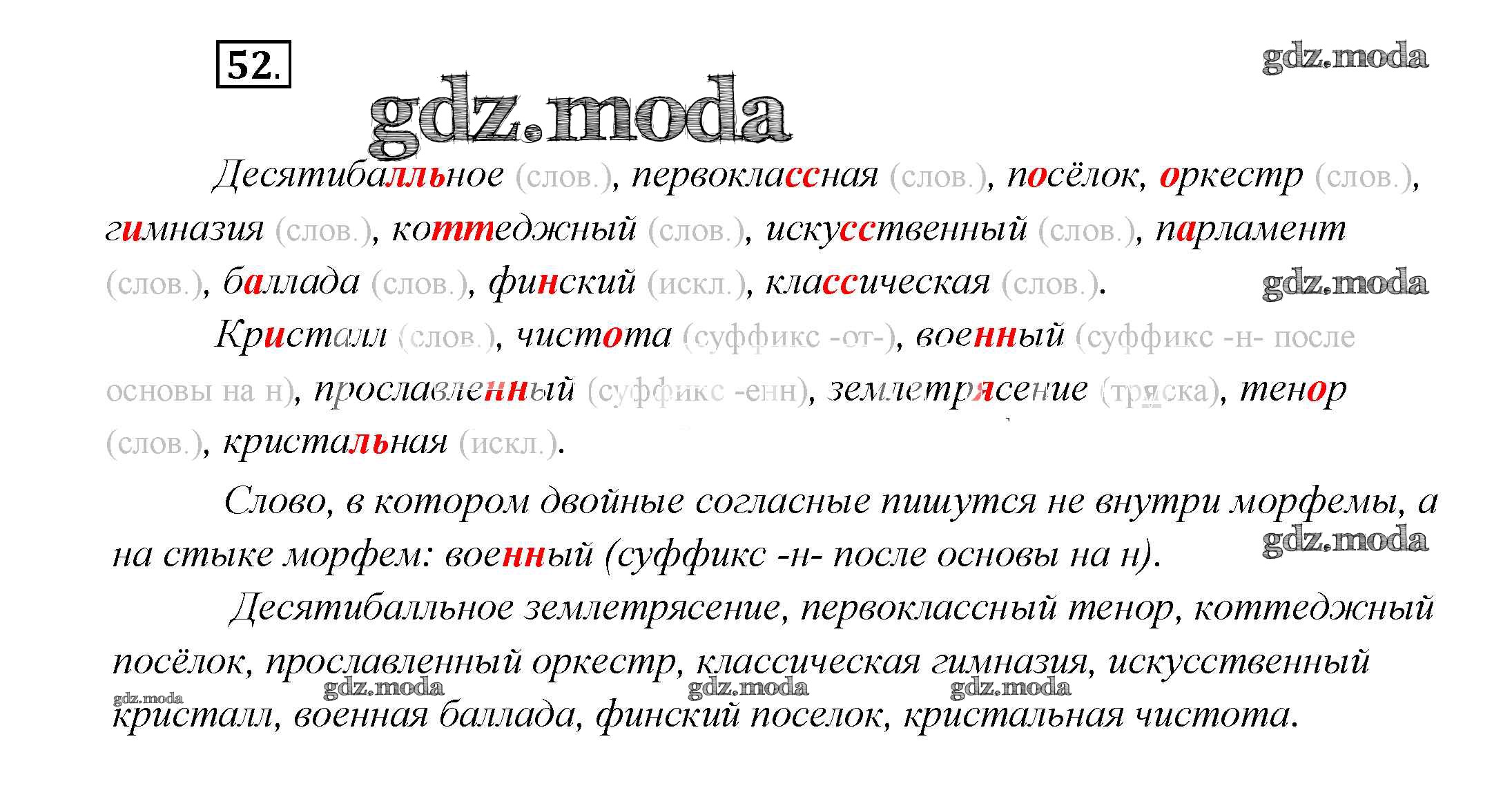 ГДЗ решение к заданию № 52 Русский язык 7 класс Шмелев А.Д. Вентана-граф 2016 ФГОС бесплатно на гдз.мода!