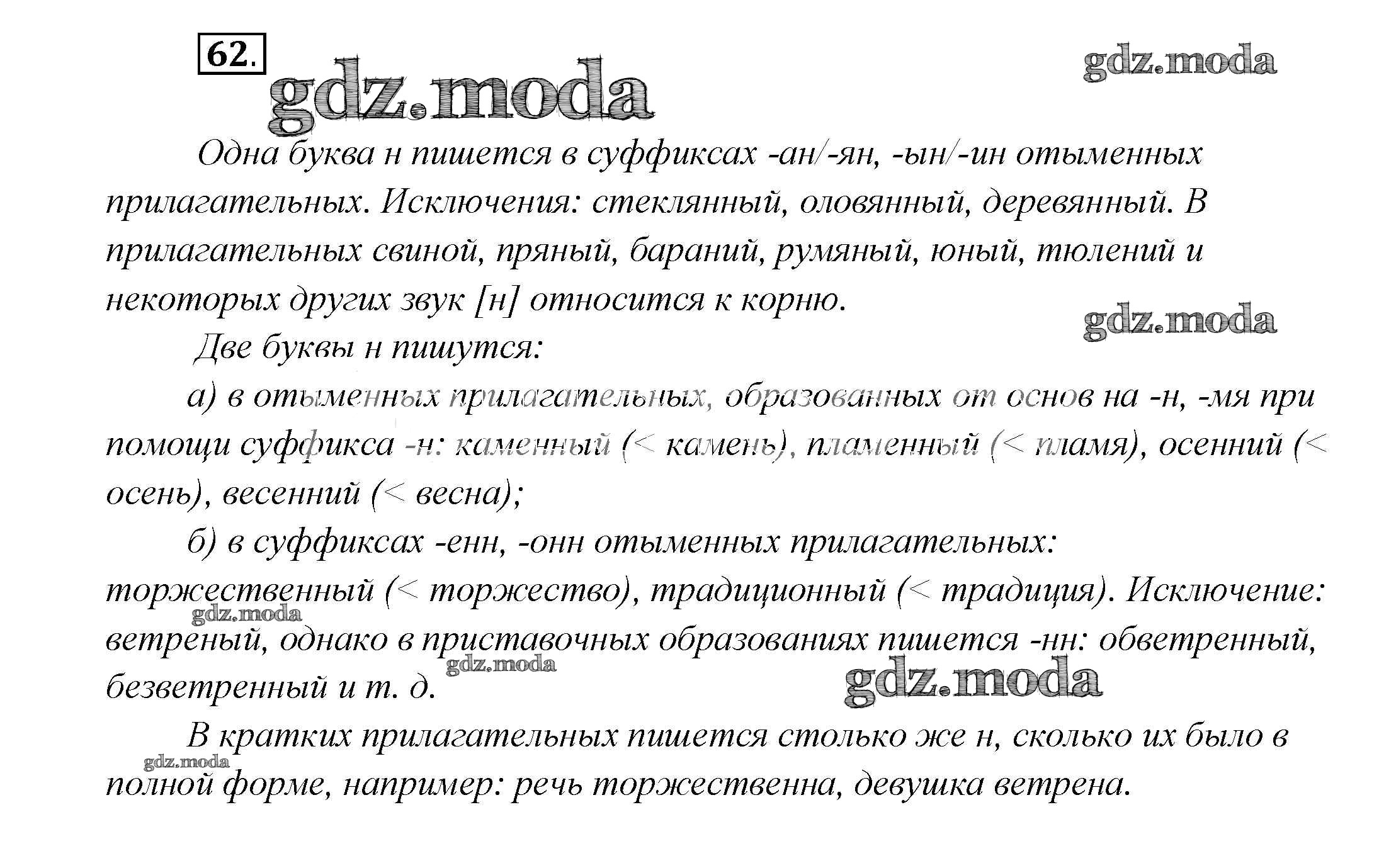 ГДЗ решение к заданию № 62 Русский язык 7 класс Шмелев А.Д. Вентана-граф 2016 ФГОС бесплатно на гдз.мода!