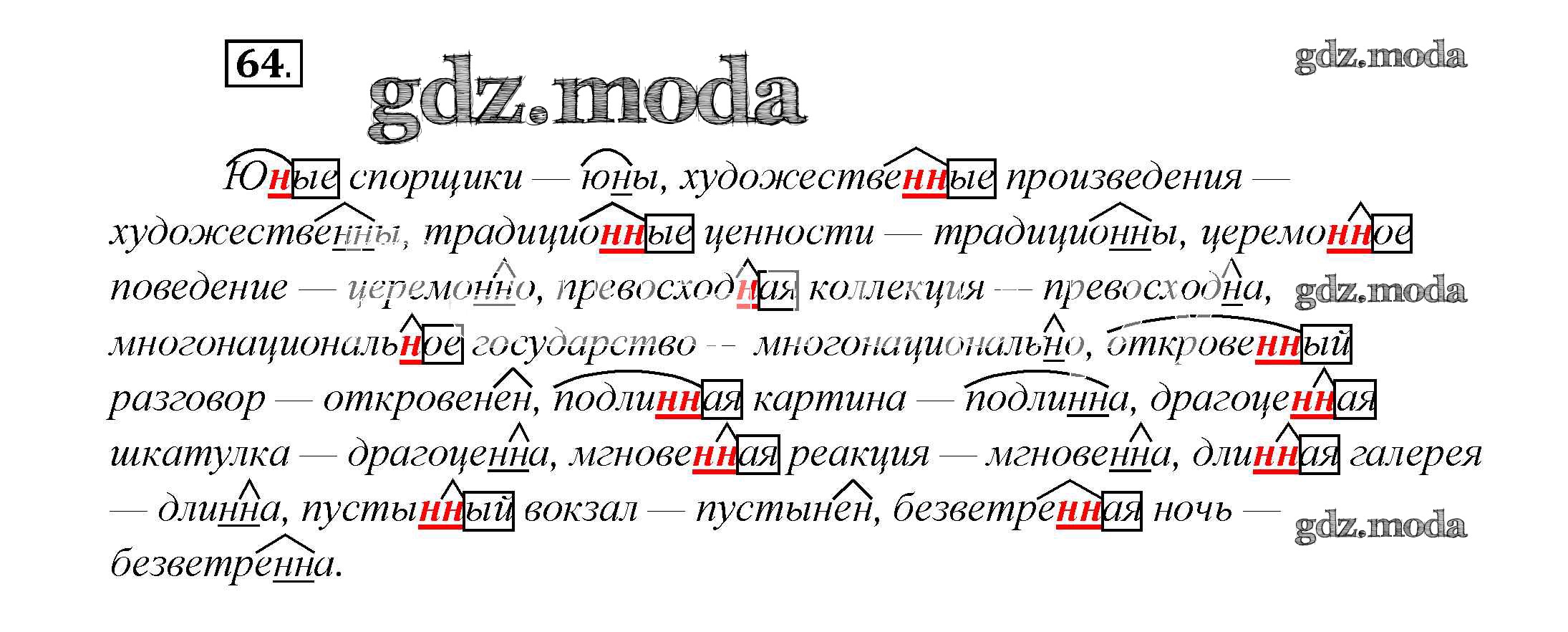 ГДЗ решение к заданию № 64 Русский язык 7 класс Шмелев А.Д. Вентана-граф 2016 ФГОС бесплатно на гдз.мода!