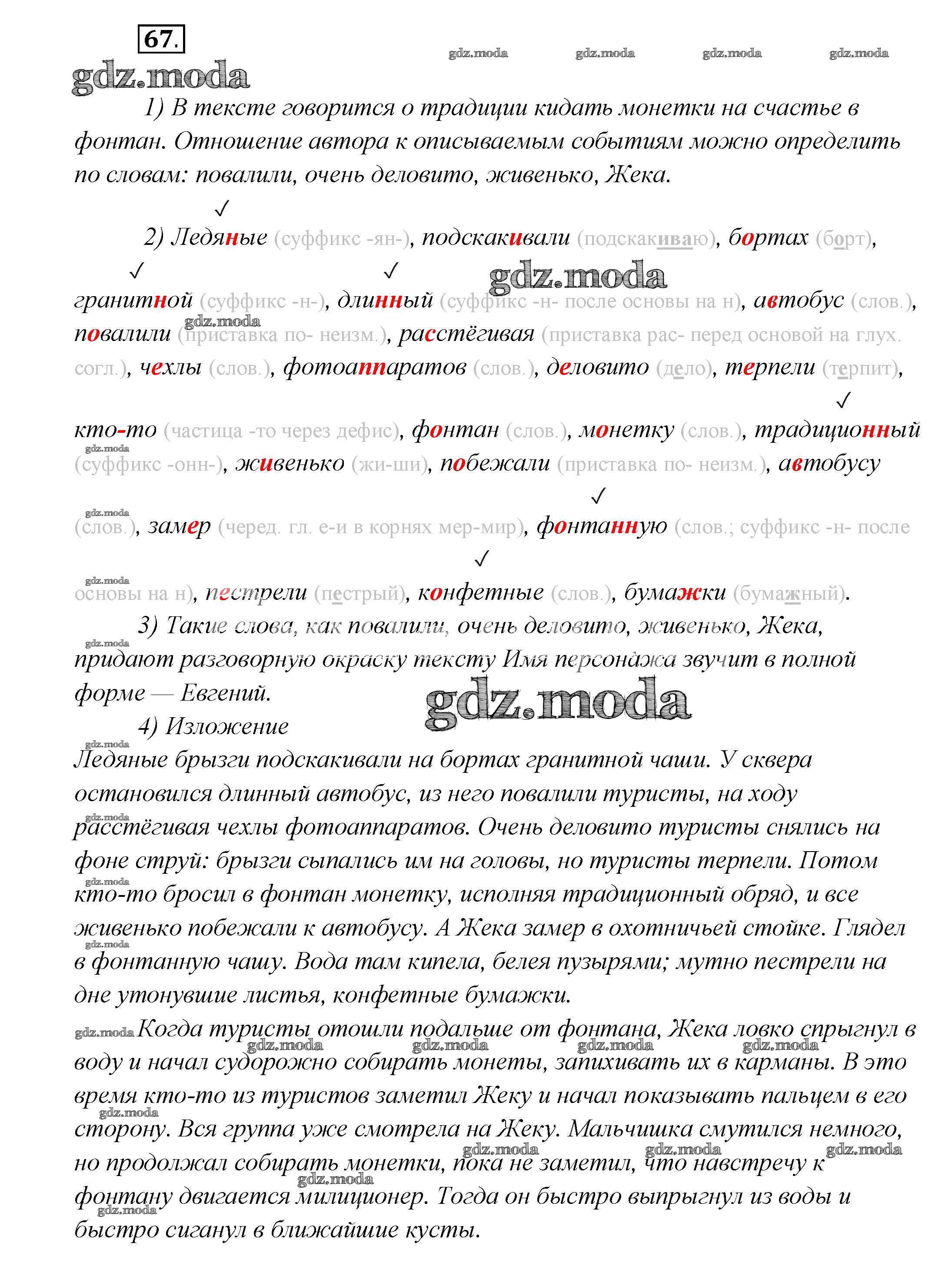 ГДЗ решение к заданию № 67 Русский язык 7 класс Шмелев А.Д. Вентана-граф 2016 ФГОС бесплатно на гдз.мода!